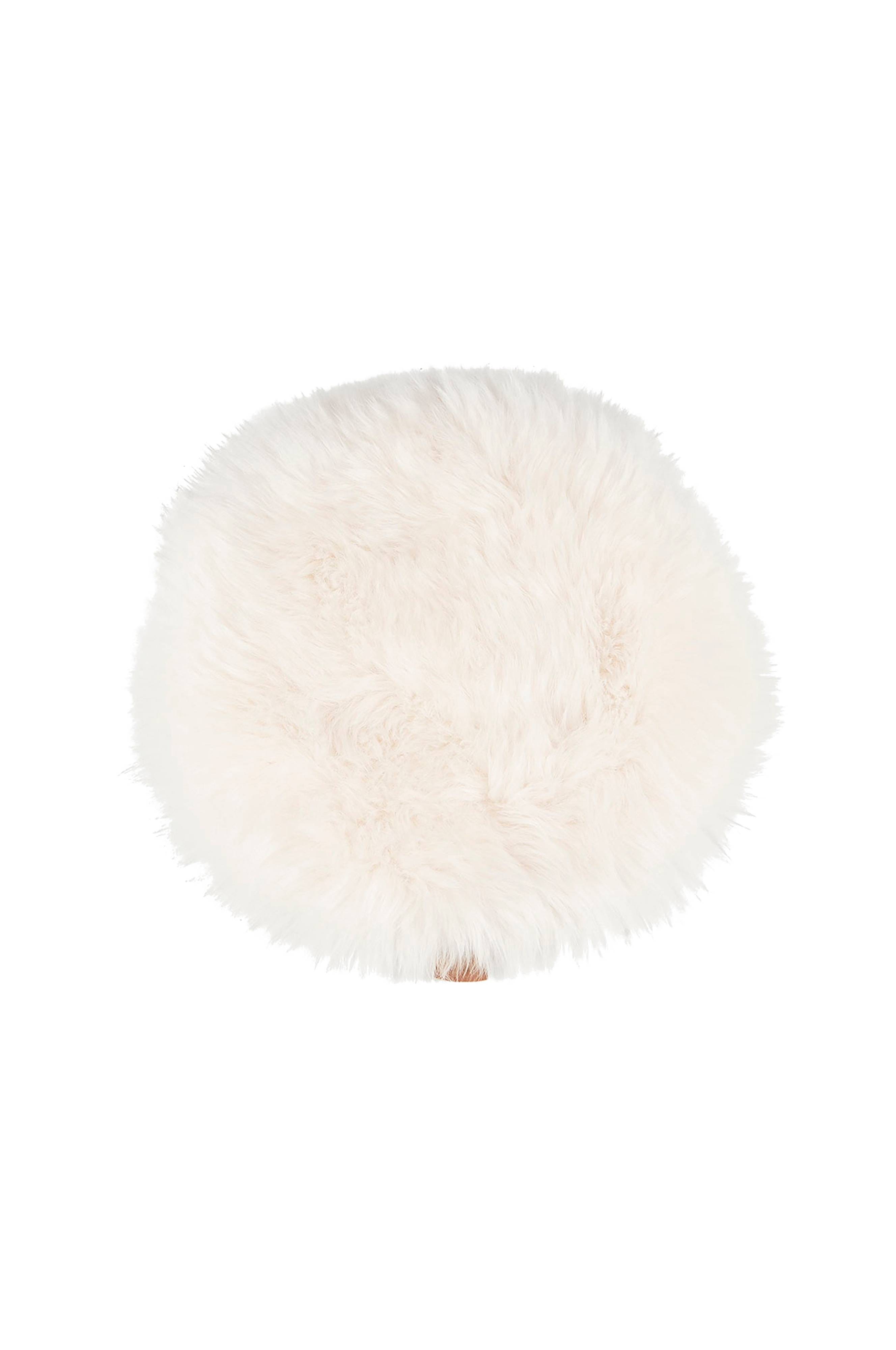Shepherd molly. En myk stolpute laget av langhåret saueskinn. Alle saueskinn er naturlige og kan derfor variere ut fra sin naturlige struktur. Underside i ufarget skinn. 36 cm ø