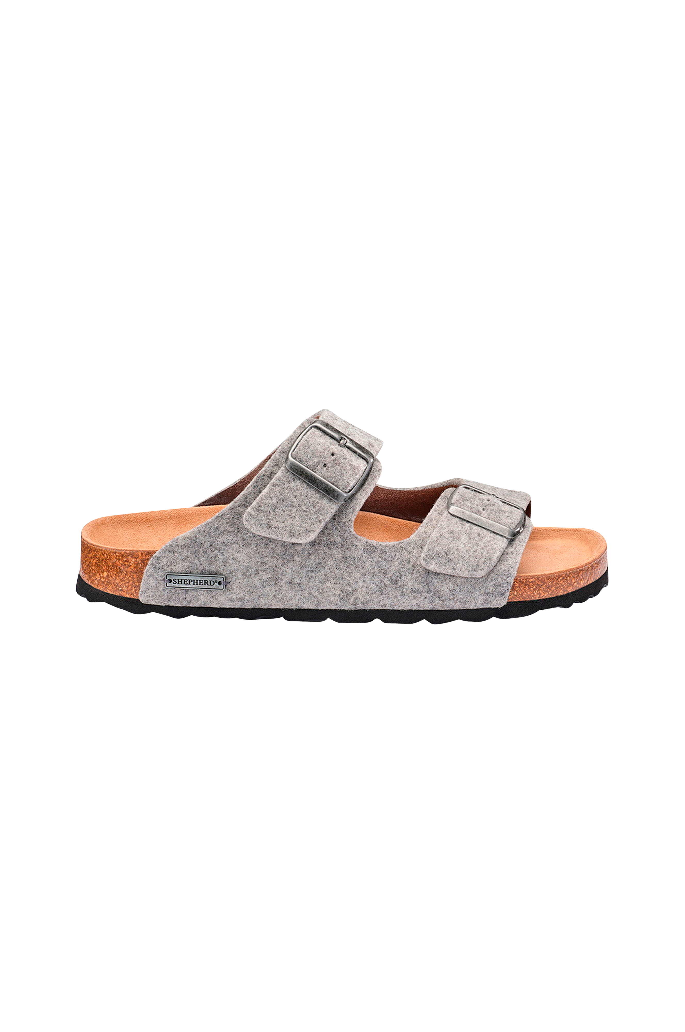 Tøfler Cassandra fra Shepherd er stabile og behagelige i fotformet modell. Den klassiske sandalen har to justerbare remmer i myk og smidig ull. Anatomisk utformet såle i kork kledd med semsket skinn. Yttersåle i EVA for lav vekt og støtdemping.