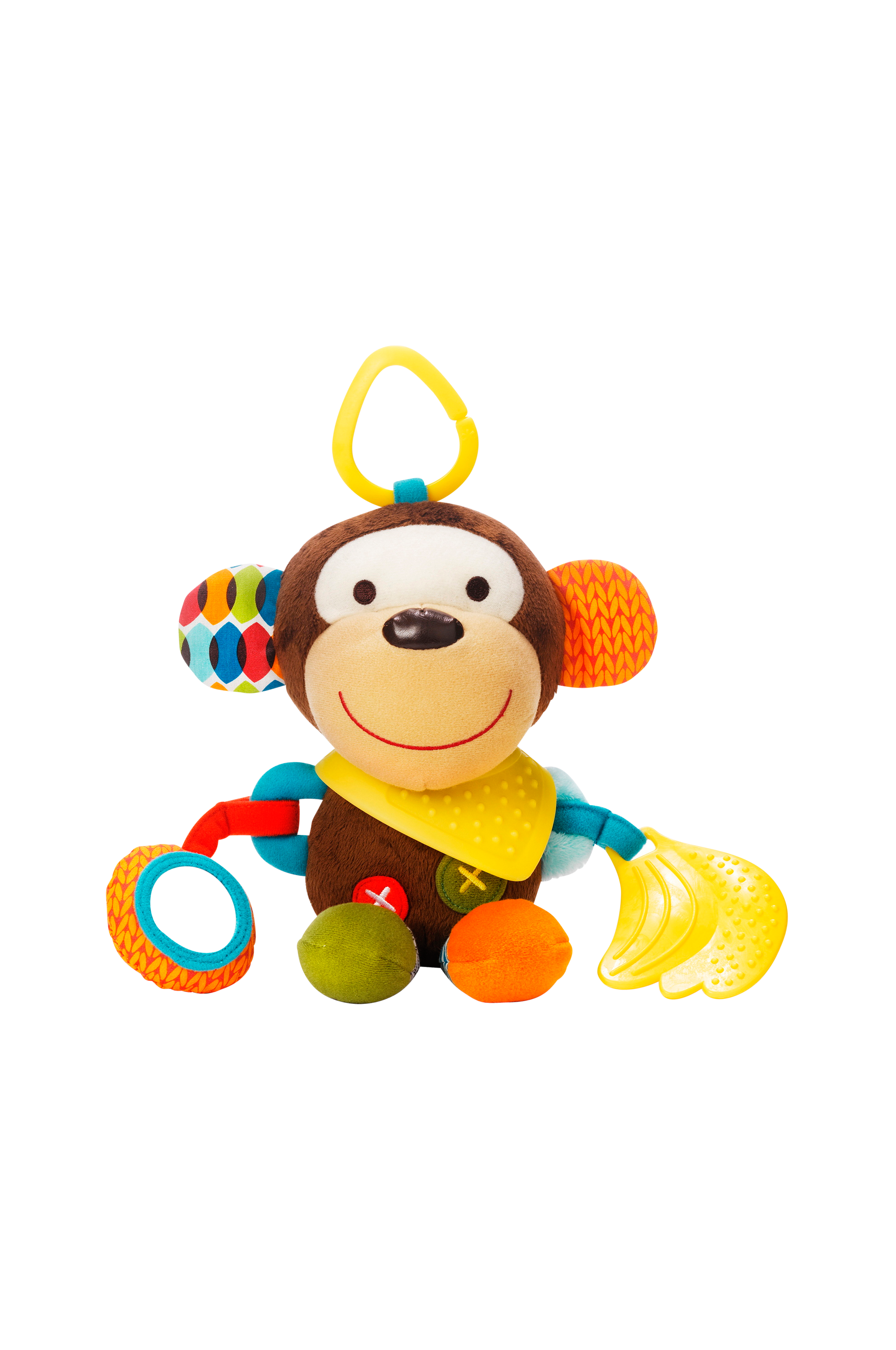 Denne søte vennen både skrangler og rasler, og har en myk bandana-bitering rundt halsen.