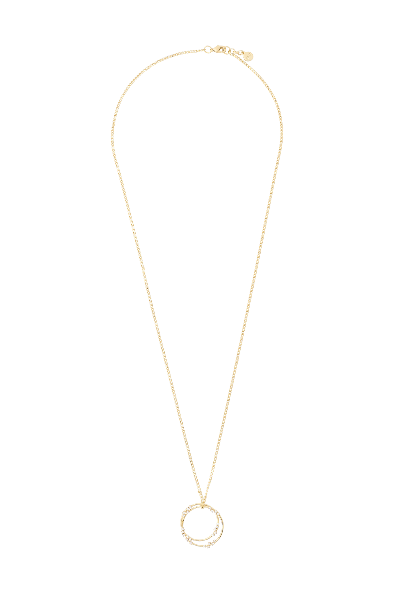 • Belagt halskjede i messing• Rundt, hengt berlokk med glitrende steiner• Justerbar lengde