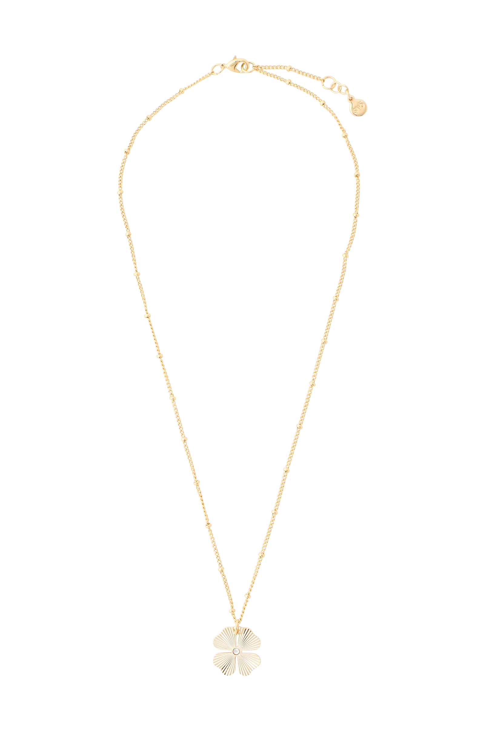 • Belagt halskjede i messing• Dekorativ firkløver• Justerbar lengde