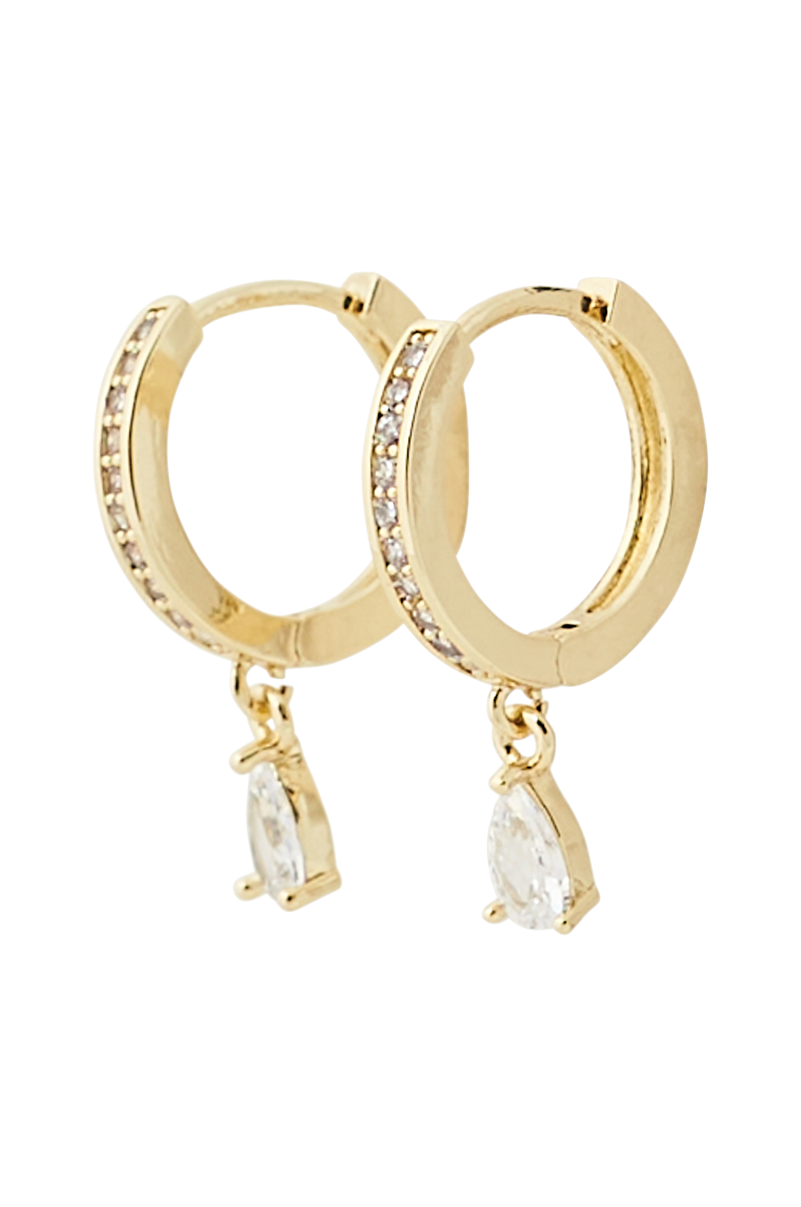 • Gullbelagte ringer i messing med små, glitrende steiner og glitrende dingle• Nikkeltestede• Størrelse 14,5 mm