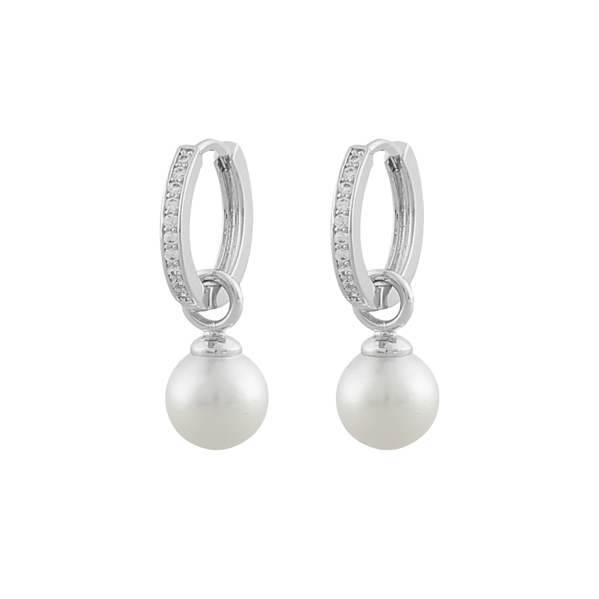 • Gullbelagte ringer i messing med små, glitrende steiner og hengte ferskvannsperle• Nikkeltestede• Ring Ø 14 mm, perle Ø 8 mm
