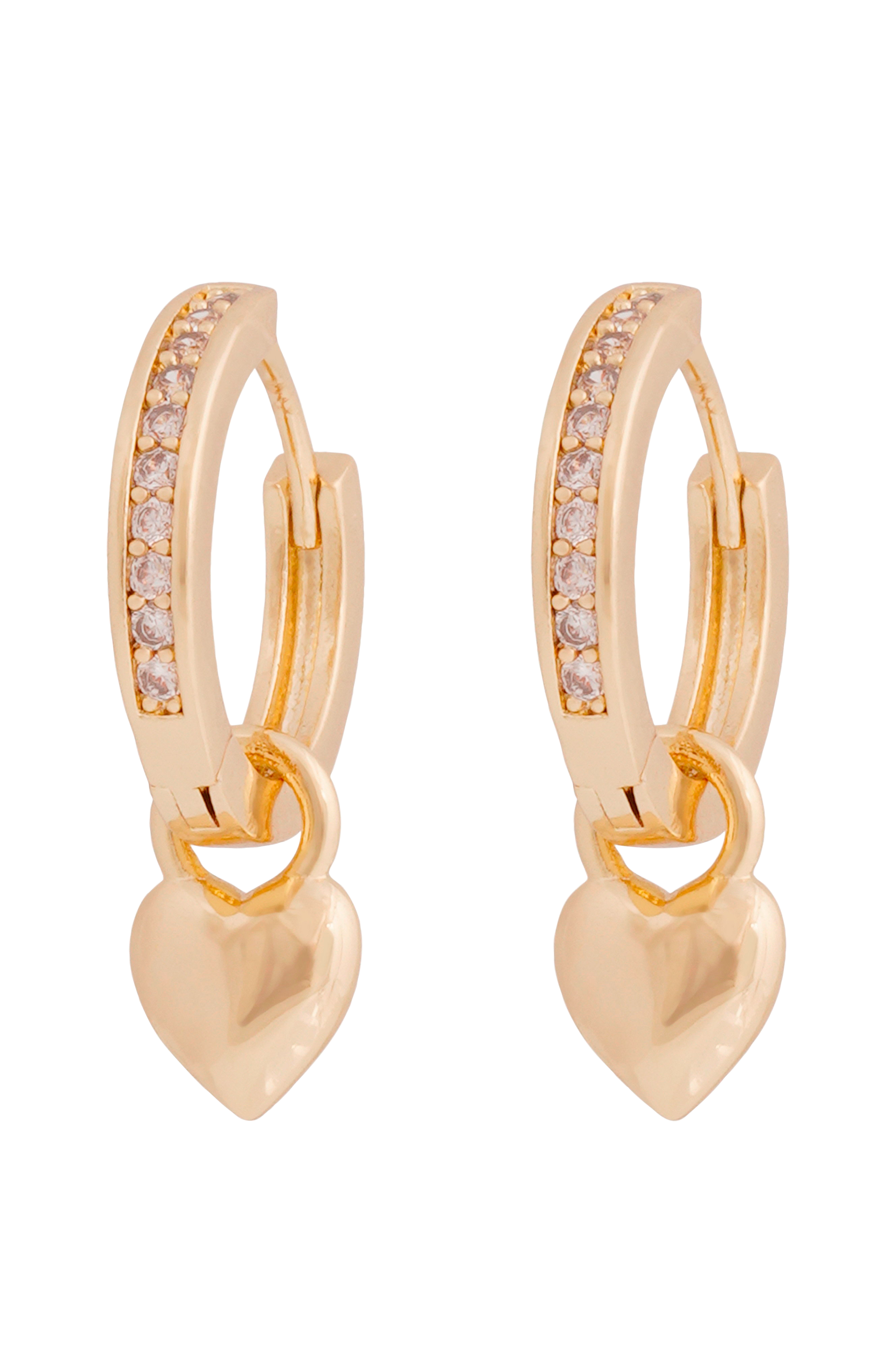 • Belagte øredobber i messing med lite, dekorativt hjerte• Små, glitrende steiner i cubic zirkonia
