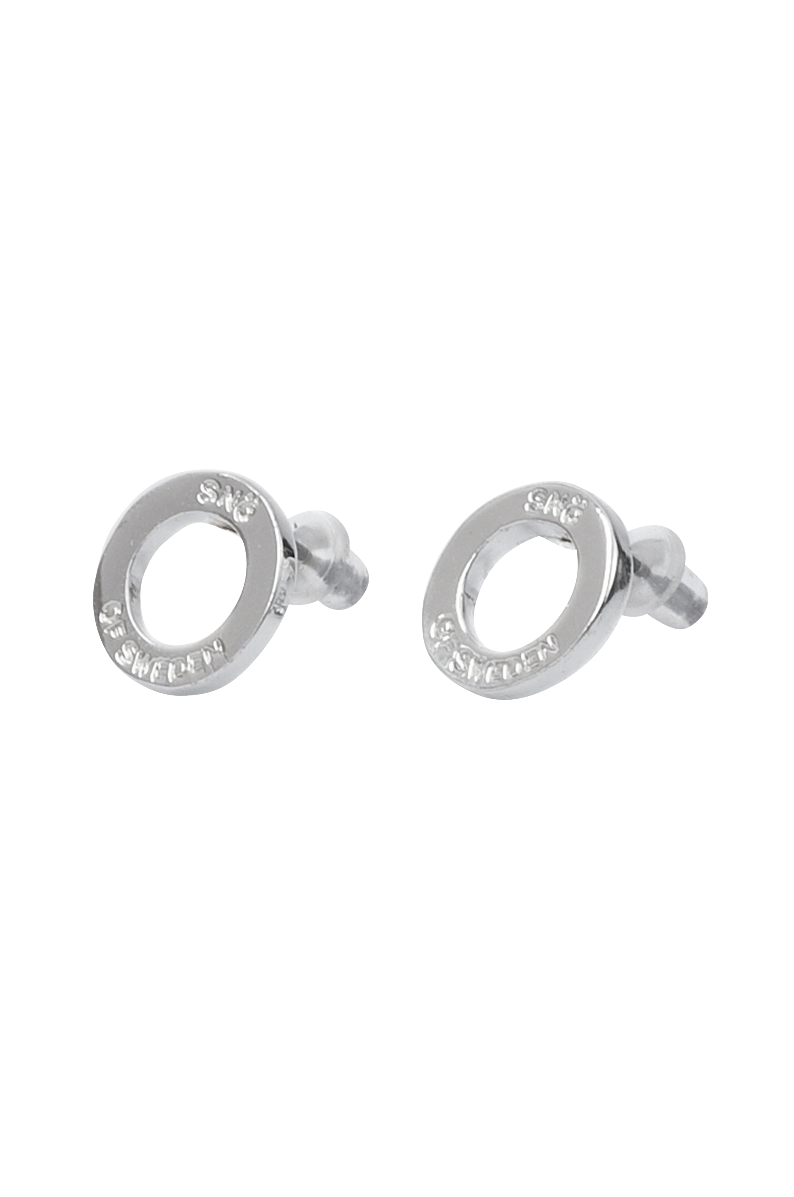 Øredobber Hege Small fra Snö Of Sweden. Stiftmodell i form av en ring med bakdel av rustfritt stål og plast. Ø 1,2 cm.