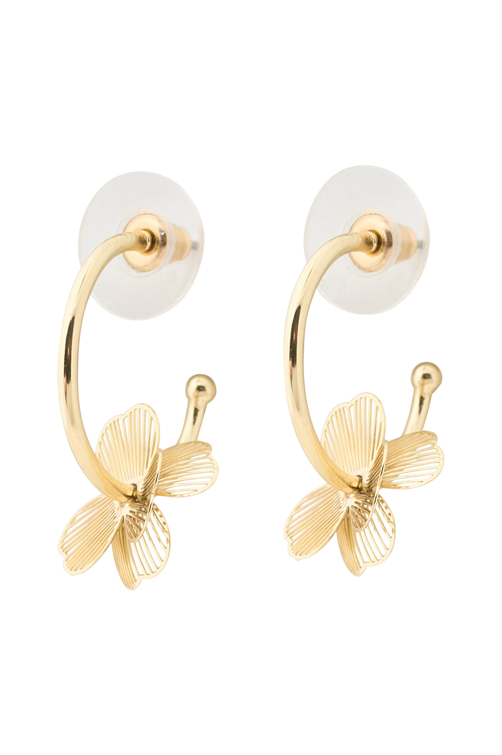 • Runde, belagte øreringer i messing• Dekorativ, hengte blomst