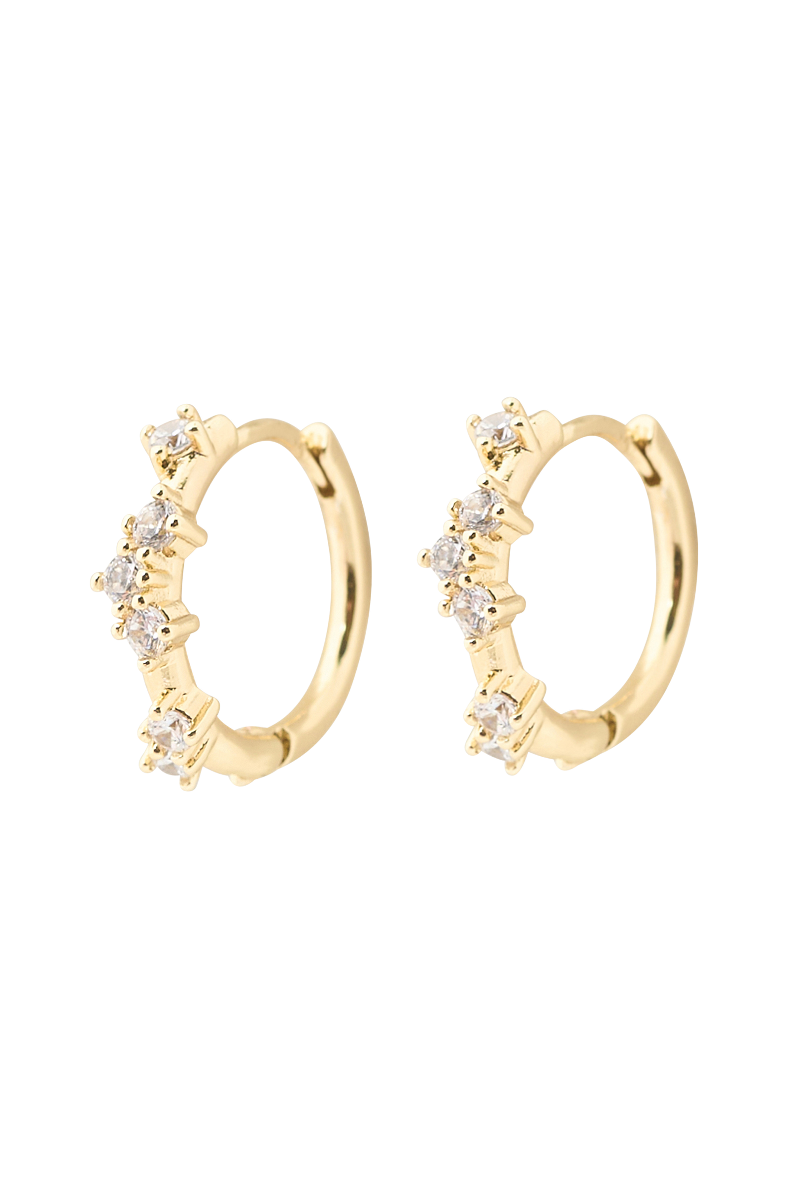 • Runde, små øreringer i belagt messing• Dekorative, glitrende steiner