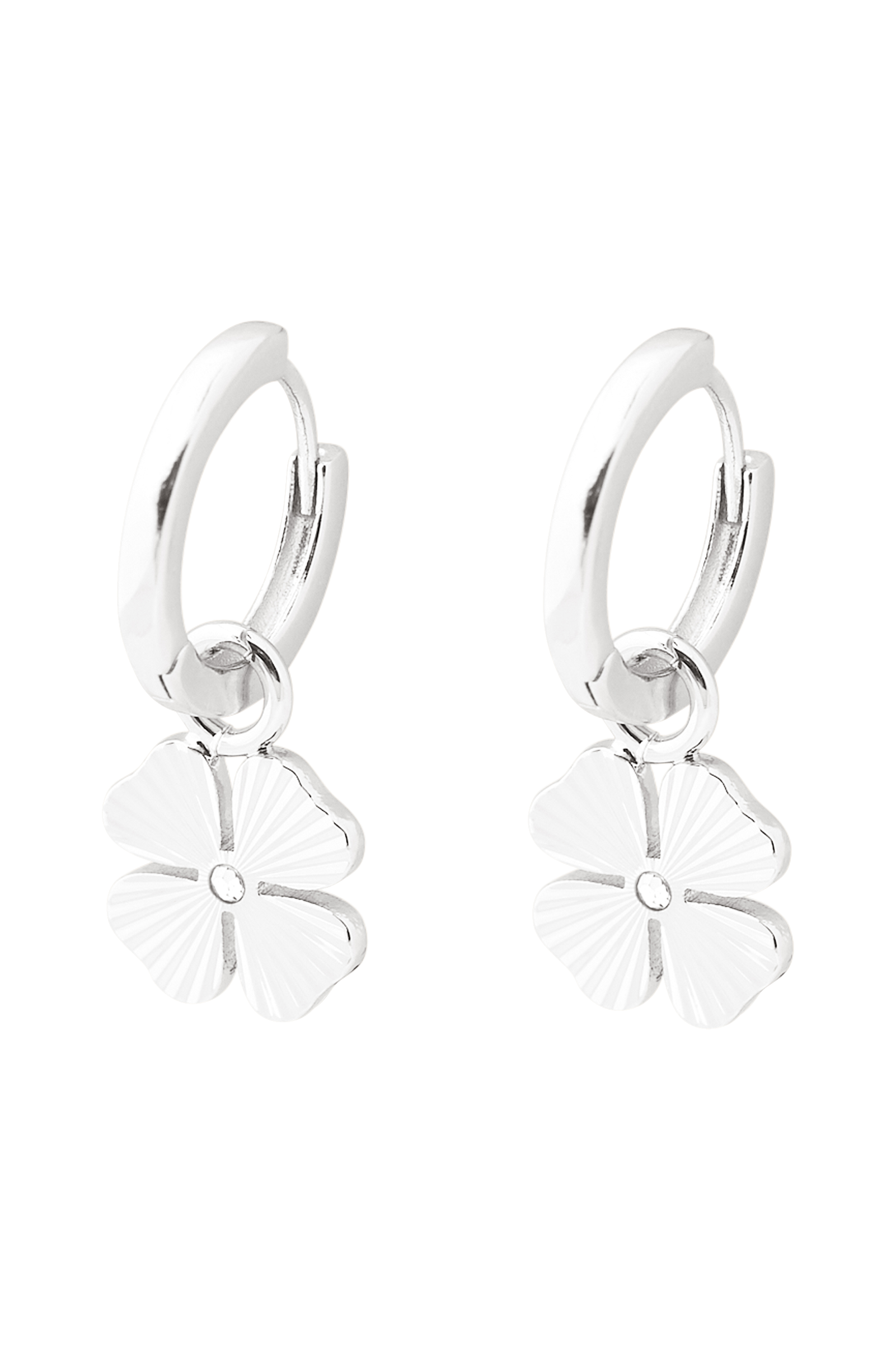 • Små, runde øreringer i belagt messing• Dekorativ, hengte firkløver