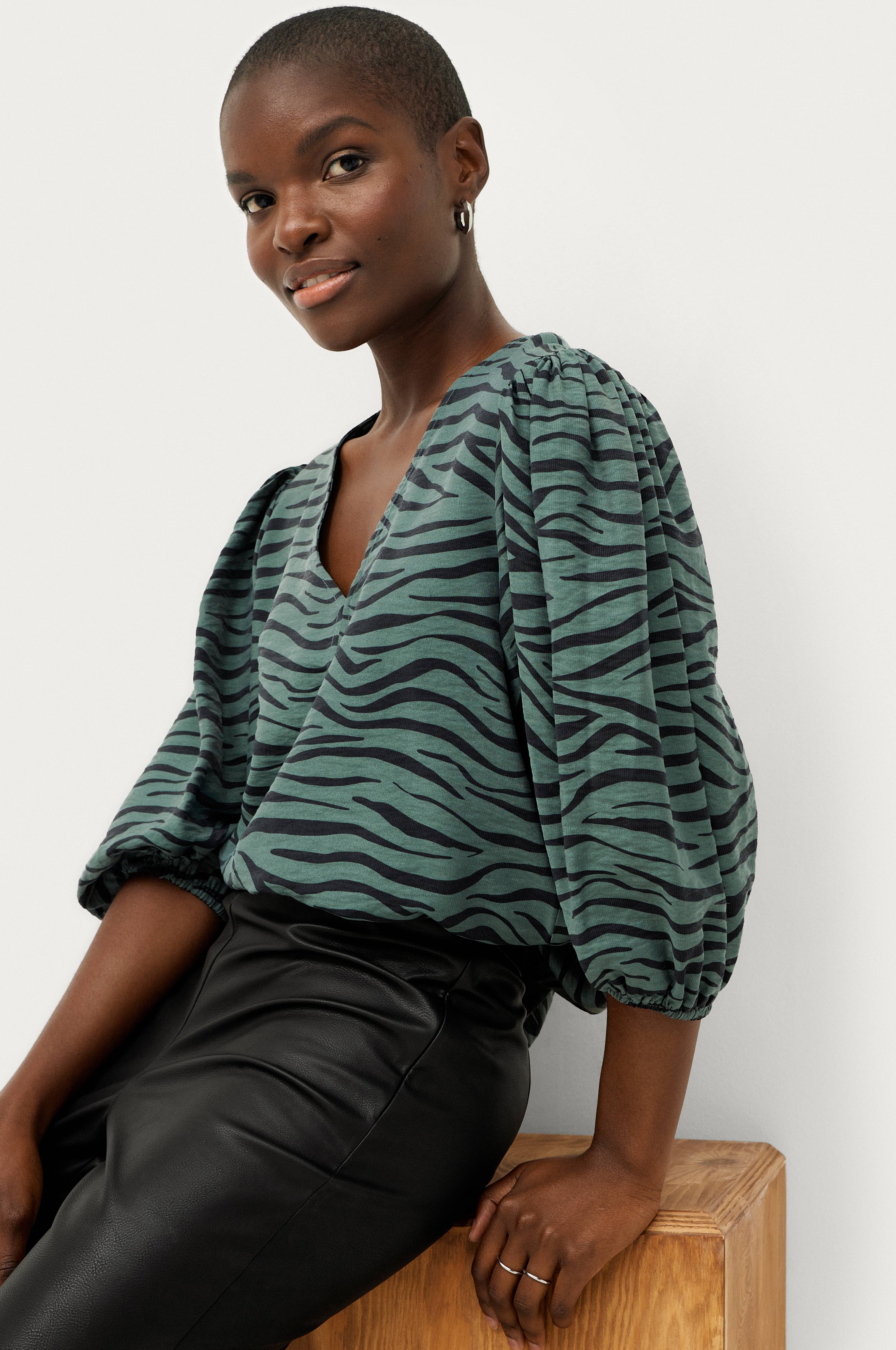 • Bluse i viskosemiks• V-formet hals• Bobleermer 3/4 lang med elastisk strikk i ermeslutten
