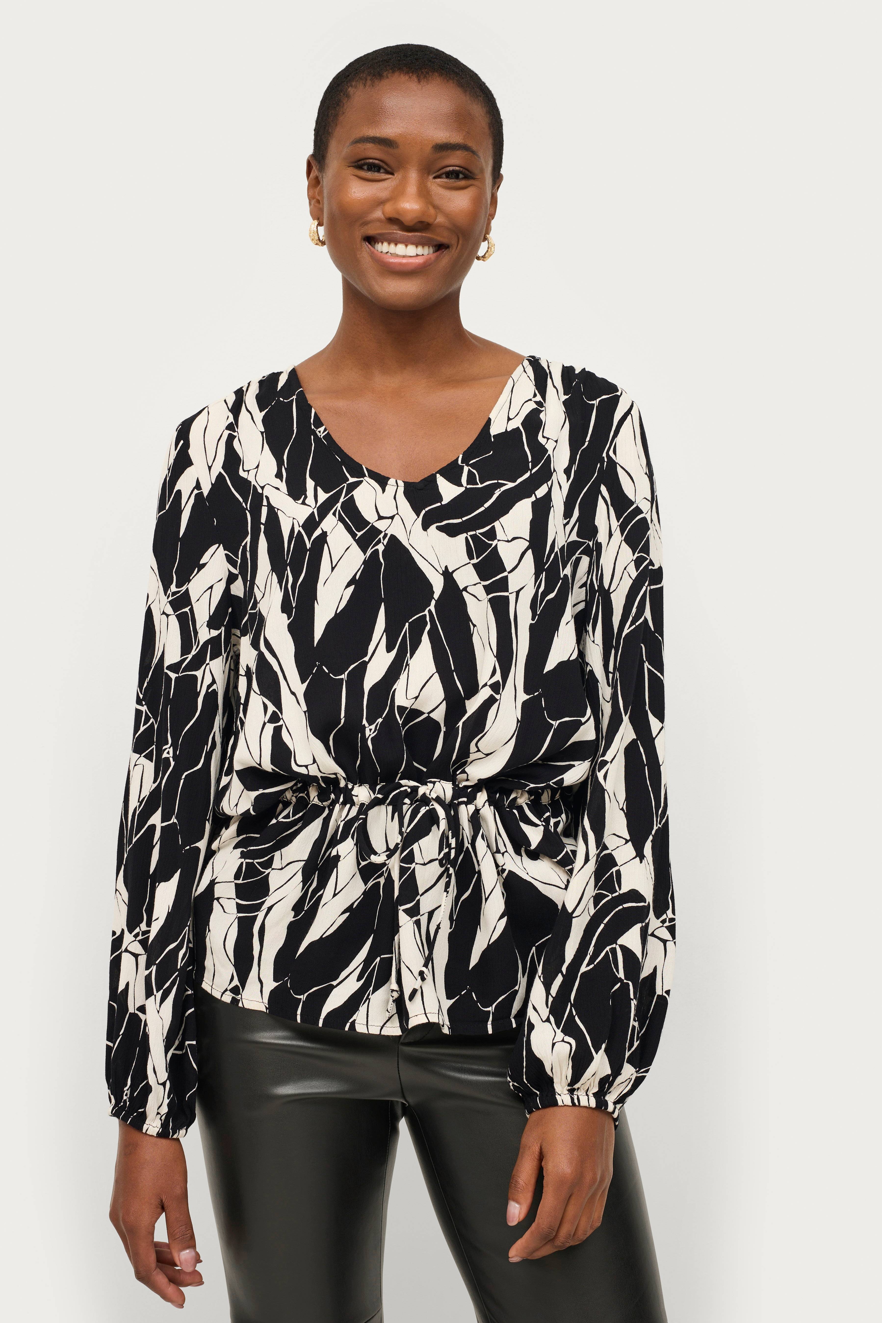 • Mønstret bluse i viskose• V-hals• Ballongermer med elastiske mansjetter• Snøring ved midjen• Rynket kvalitet
