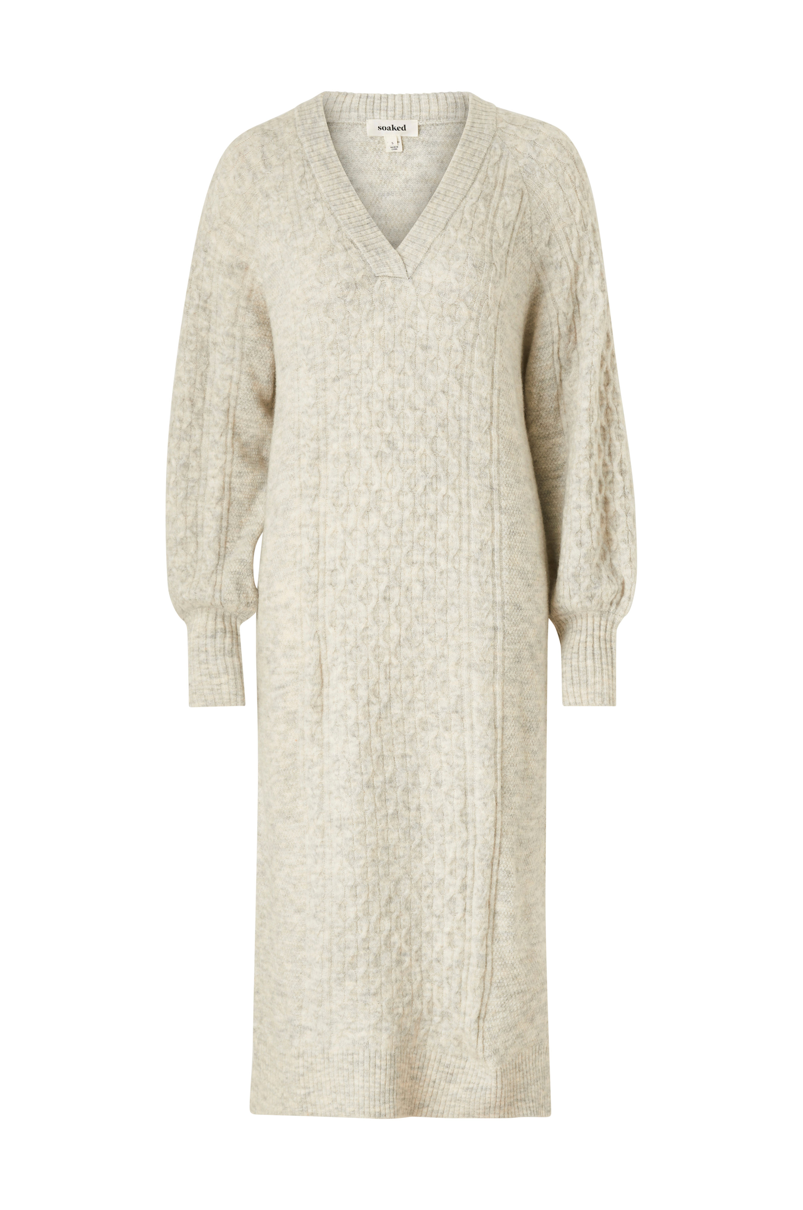 • Rett, mønsterstrikket modell• V-formet hals med ribbet kant• Langt raglanerme• Skjær nede i sidene• Ribbestrikk i nedre kant og i ermeslutten• Lengde: 124 cm i størrelse S