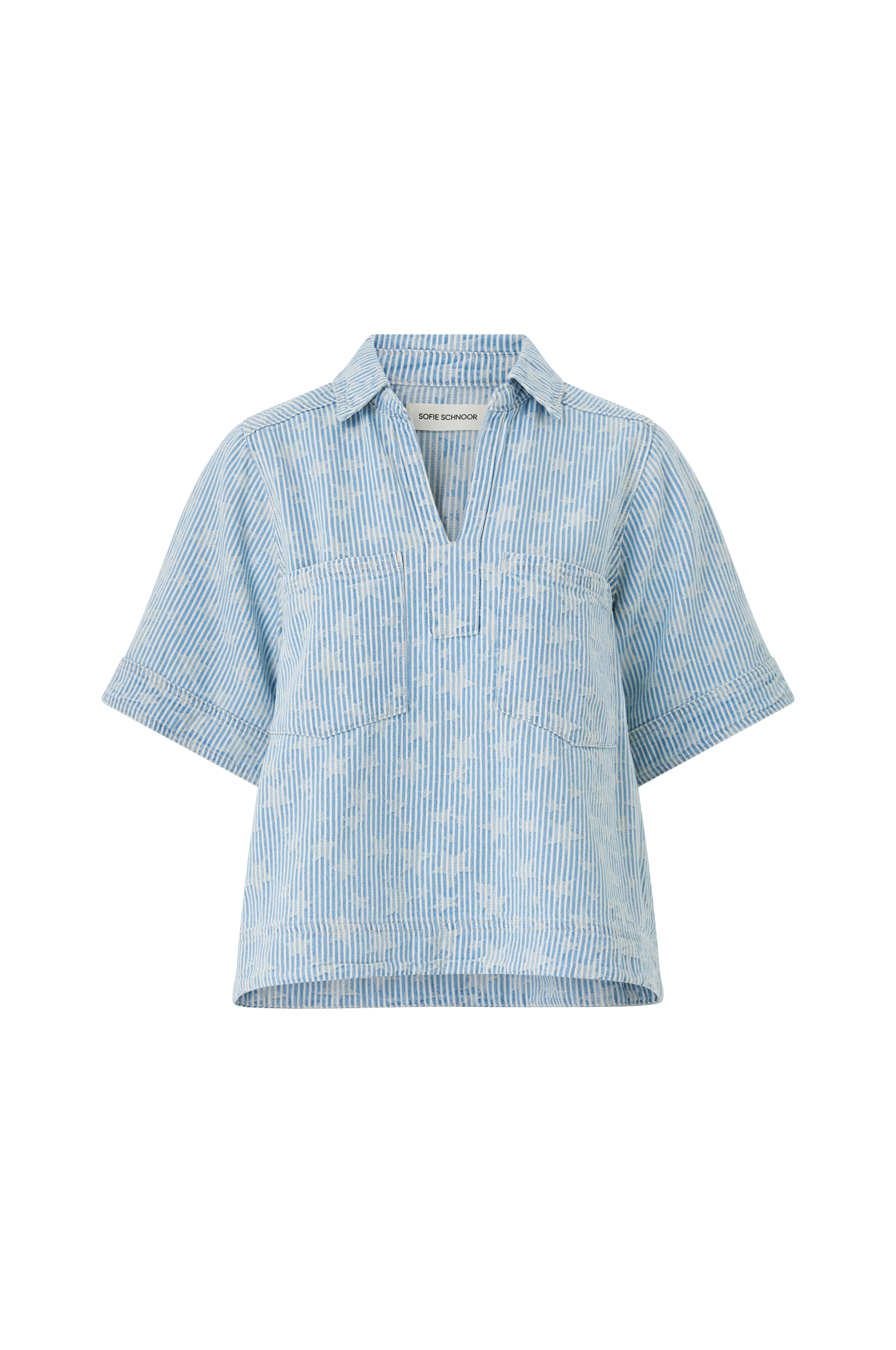 • Stripete bluse i bomull med stjernemønster lav profil• V-formet hals• Korte ermer• Brystlommer• V-ringning