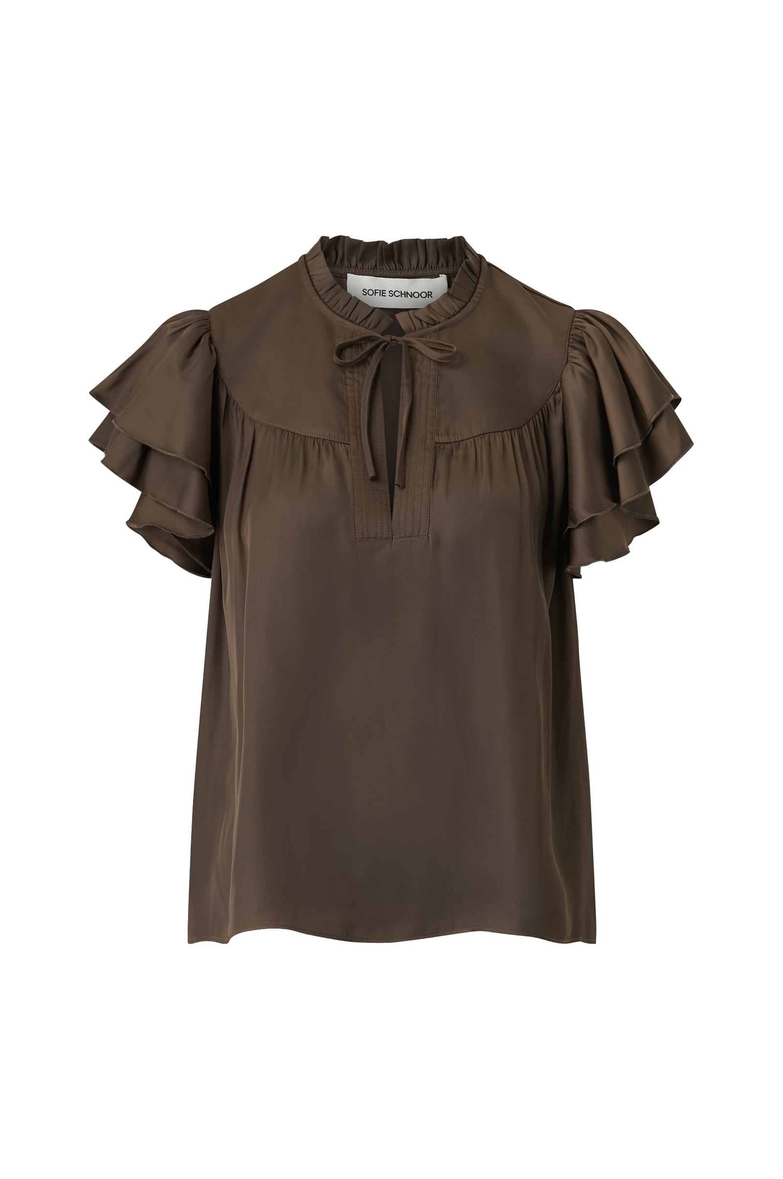 • Volangkant med plissé på nakken