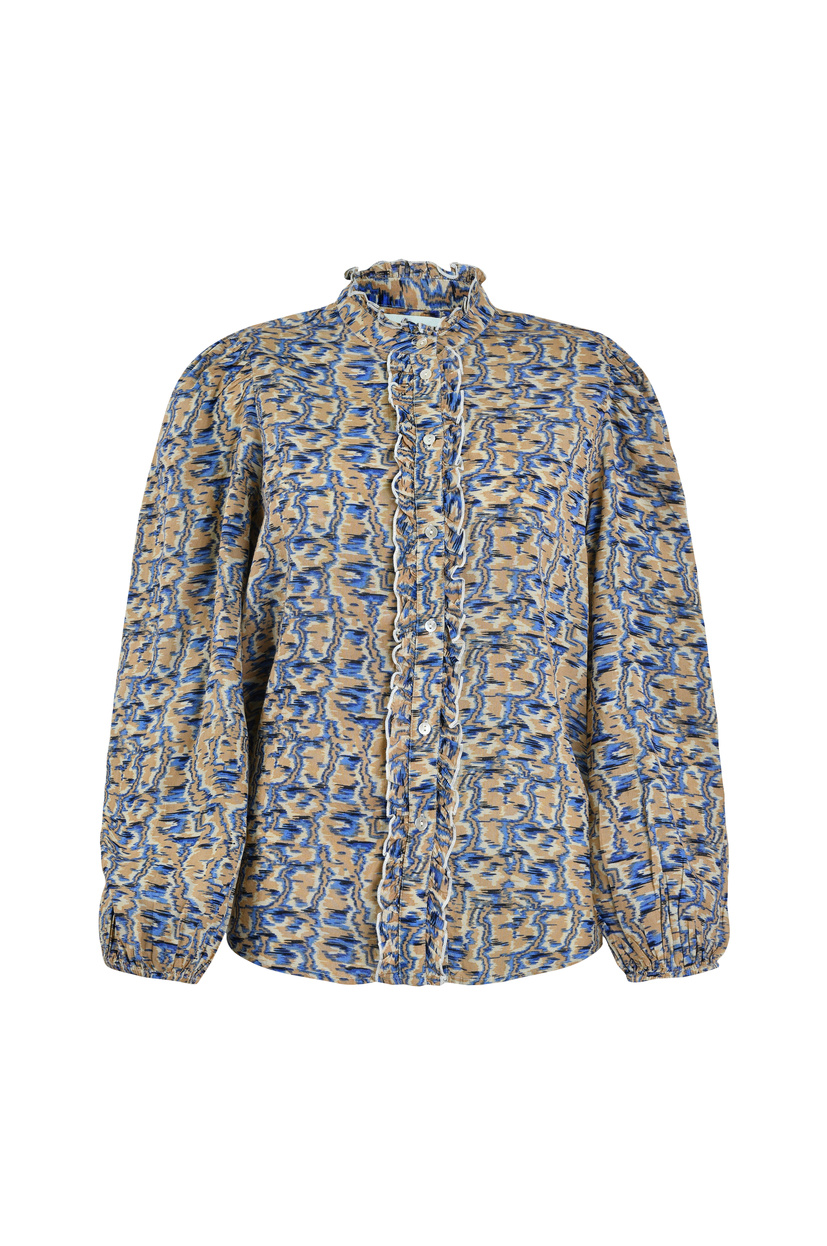• Rett modell• Rund hals• Lang arm med elastisk mansjett• Volang rundt halsen og foran