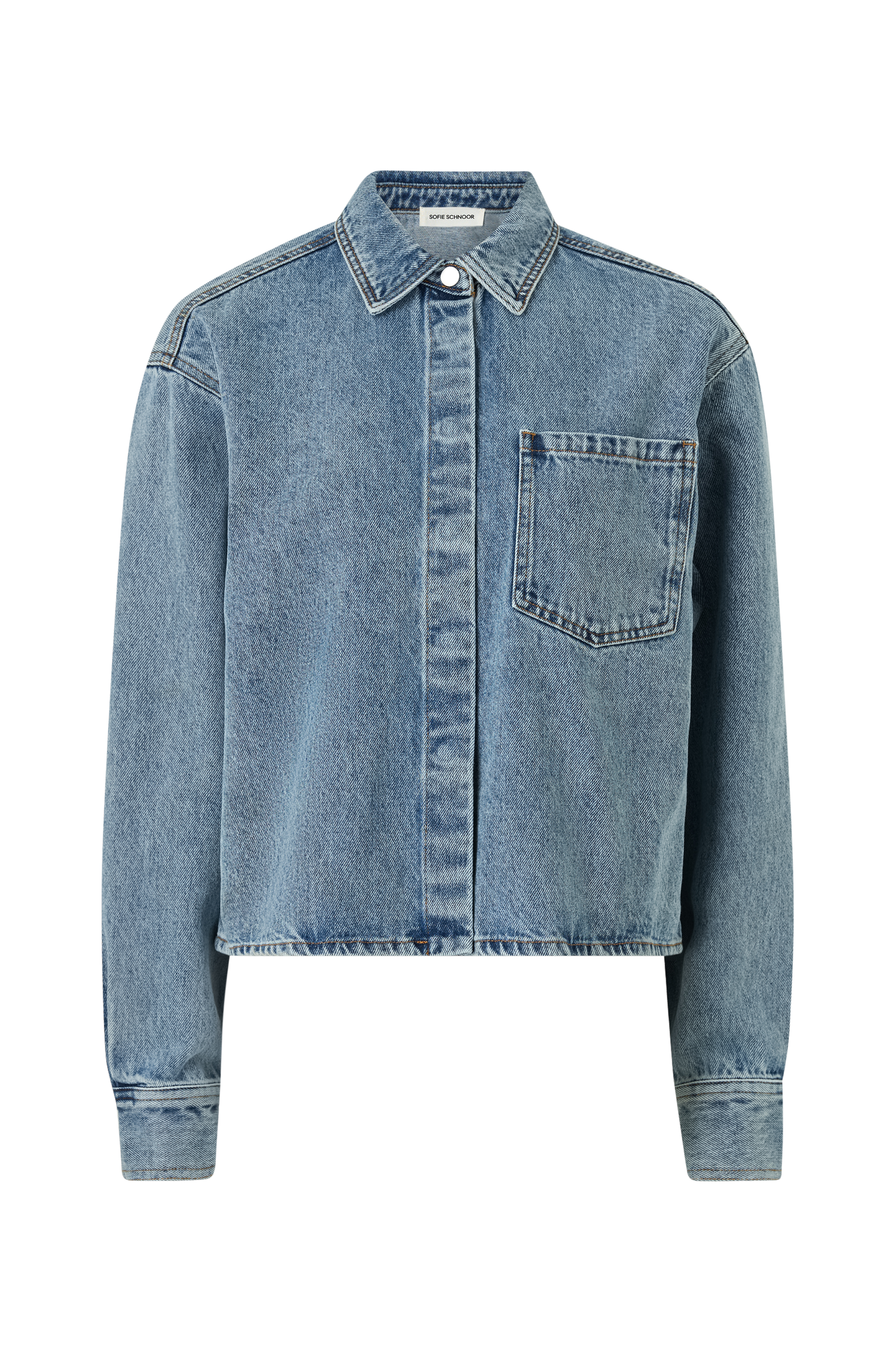 • Jakke i denim• Lange ermer• Skjær med knapp i ermeslutten• Skjortekrage• En brystlomme• Knappelukking• Lengde: 55 cm i størrelse 36