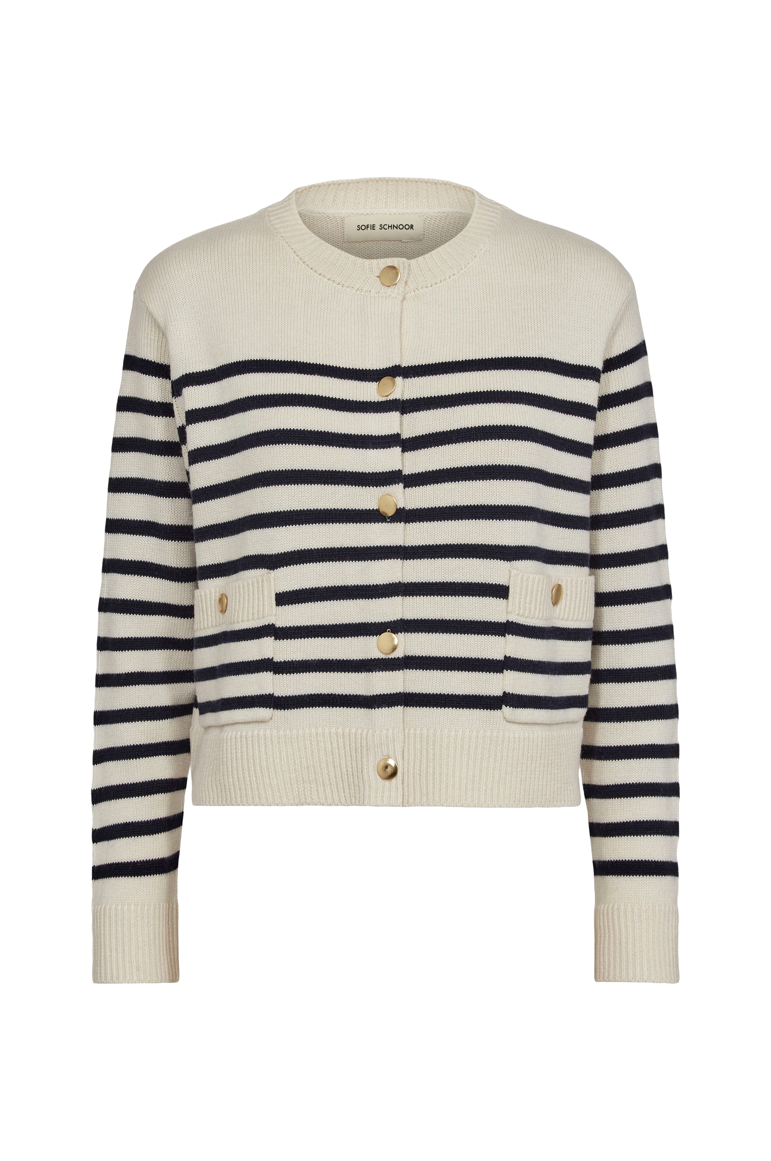 • Gullfargede knapper• Lommer foran• Ribbestrikk i ermeslutten og på bunnen