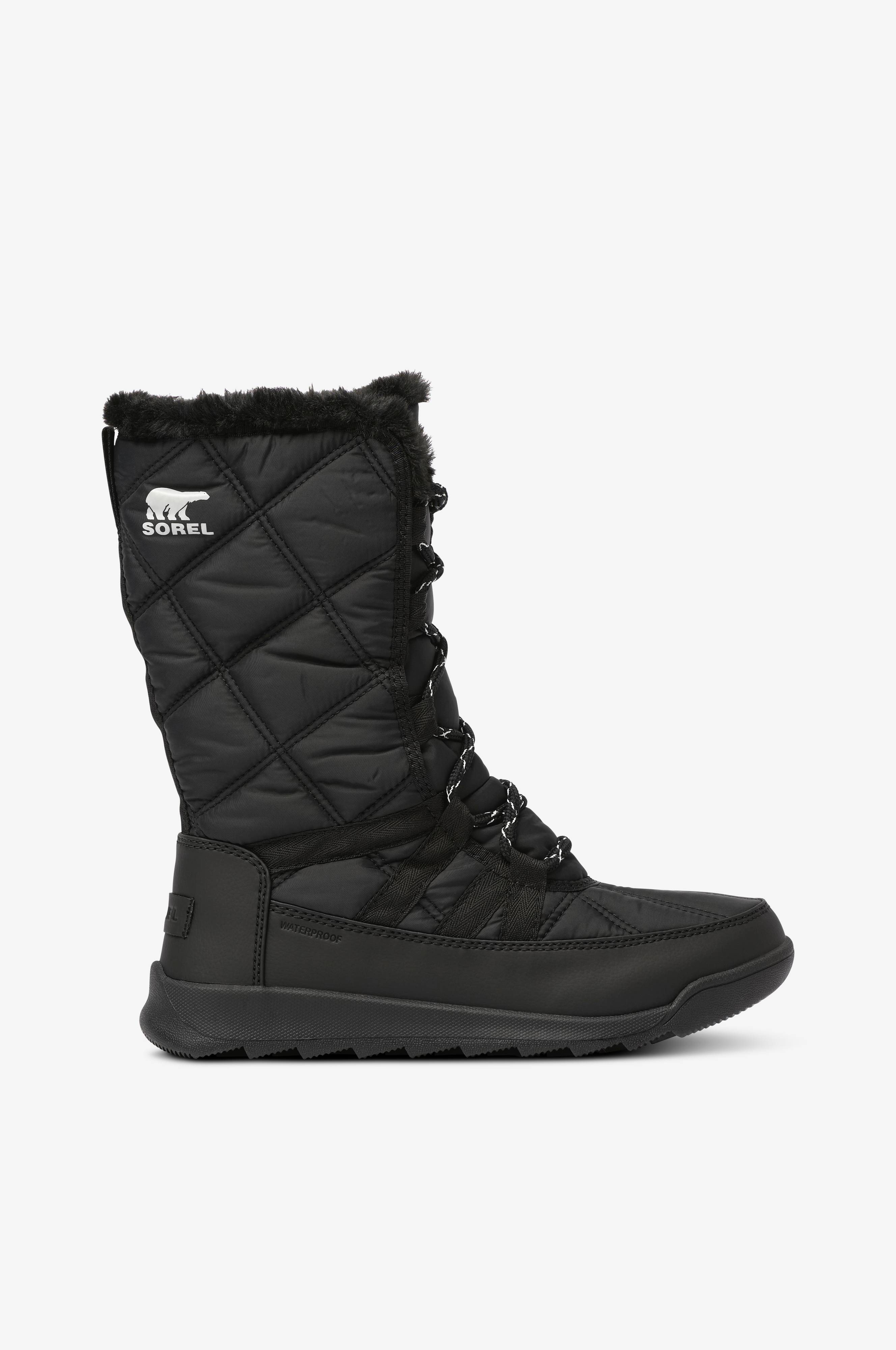 Høy støvler med snøring. Overdel i quiltet, vanntett nylon. Skaftet er lett vattert med fleeceinnside for varme og komfort. Fuskepels øverst. Uttagbar, støpt innersåle kledd i mikrofleece. Vevd drahempe bak. Skafthøyde ca. 22 cm.