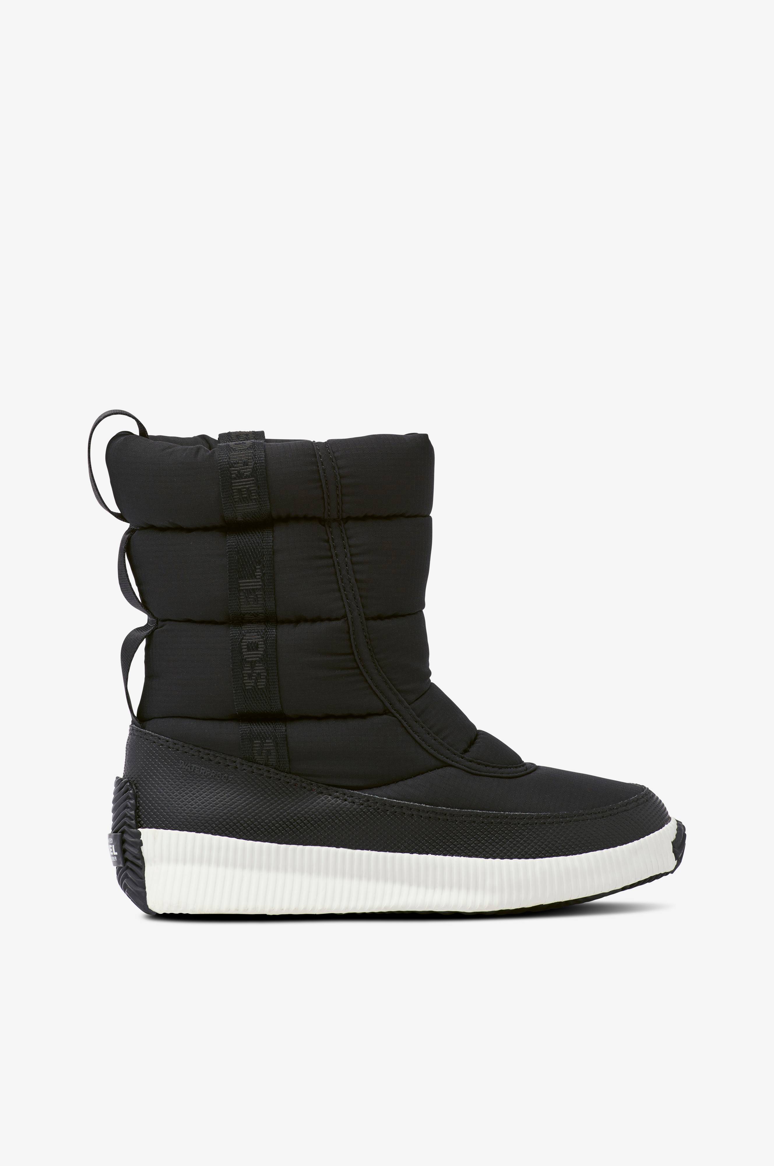 Vinterboots Out N About Puffy Mid fra Sorel. Sporty modell i vanntett materiale med varmende isolering og beskyttende kant rundt sålen. Fôr i myk mikrofleece, og uttagbar, støpt innersåle. Vevd bånd bak på skaftet som både er funksjonelt og dekorativt. Yttersåle med godt grep.