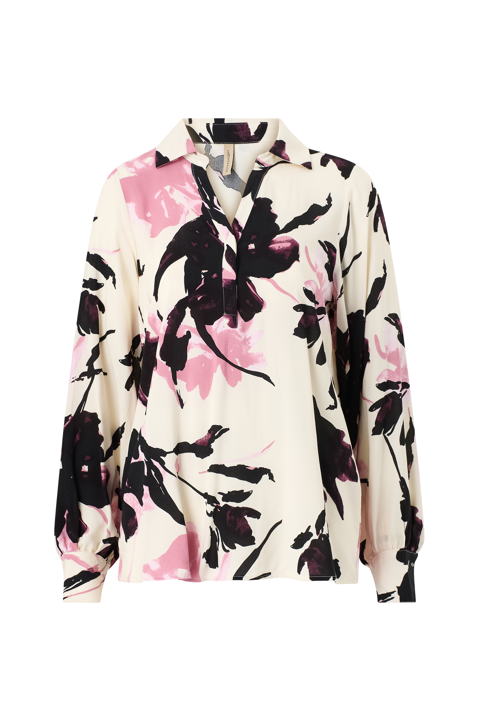 • V-formet bluse i viskose med krage• Skjult, kort frontknepping• Lange ermer med mansjetter i ermeslutten