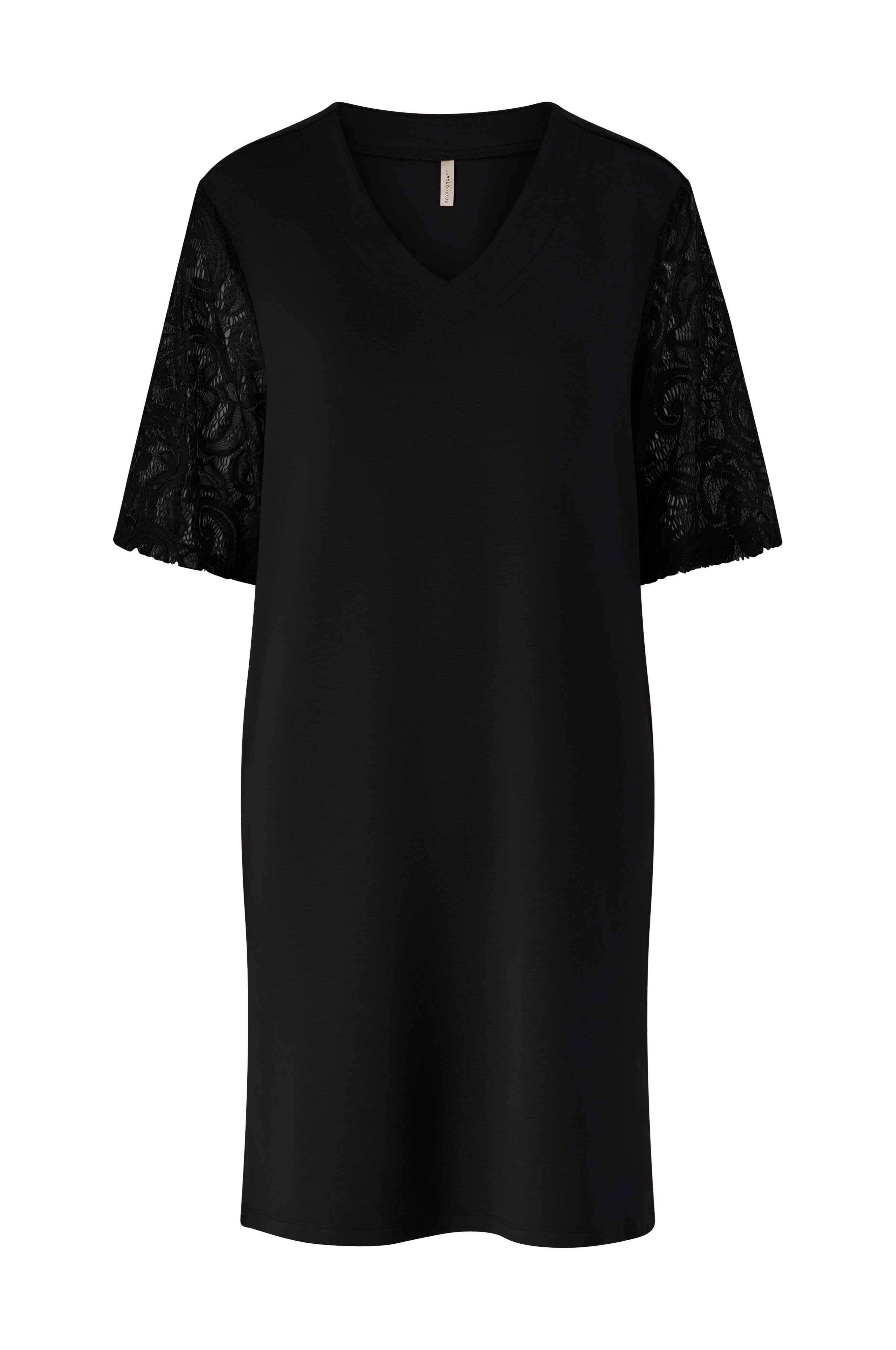• Myk, stretchy kjole• V-formet hals• Korte ermer i blonde• Sidelommer• Lengde: 96 cm i størrelse S
