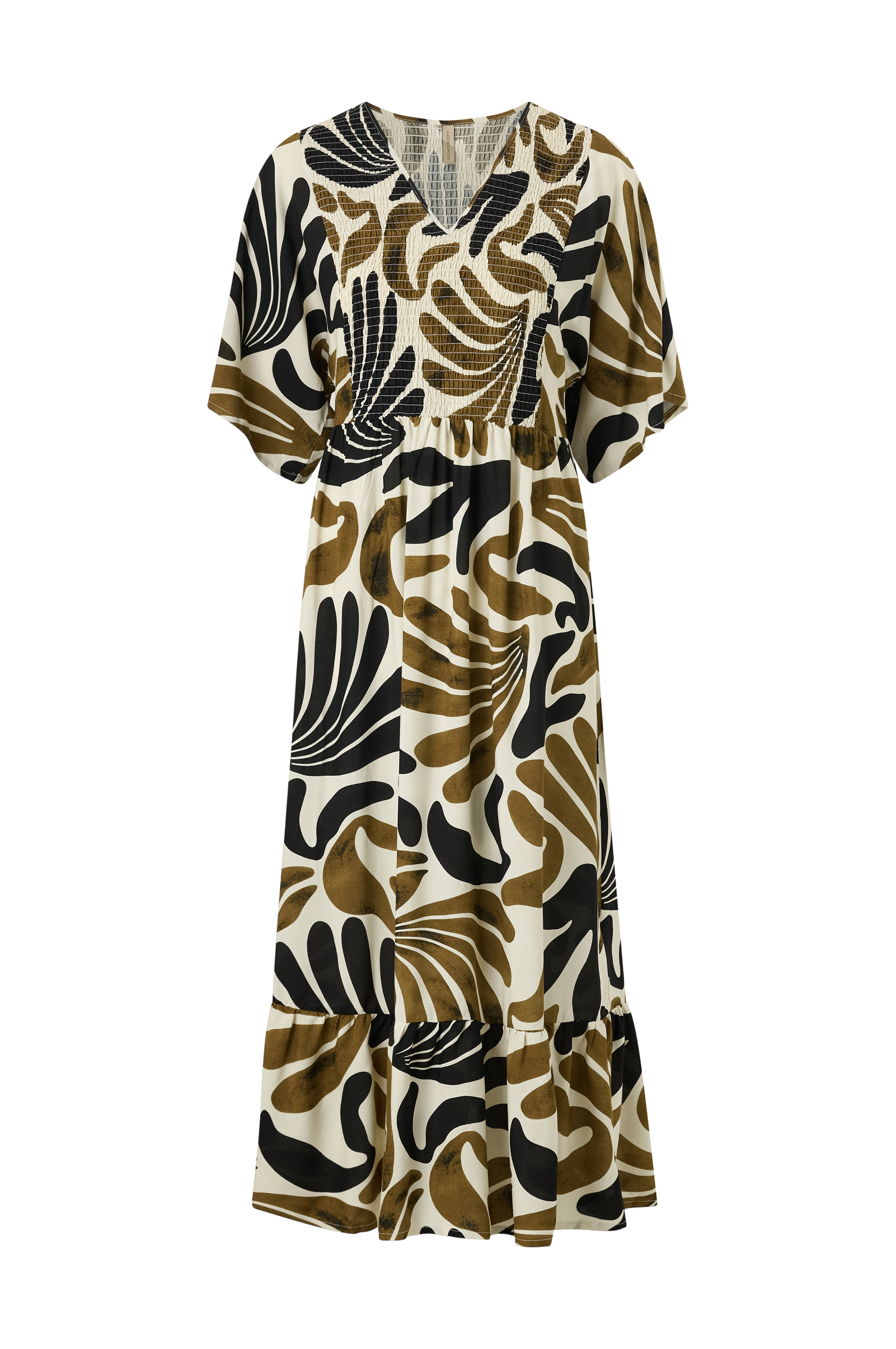 • Lang kjole med v-formet hals• Halvlange, brede ermer• Vaffelsøm på toppen• Volang i nedre kant• Lengde: 134 cm i størrelse S