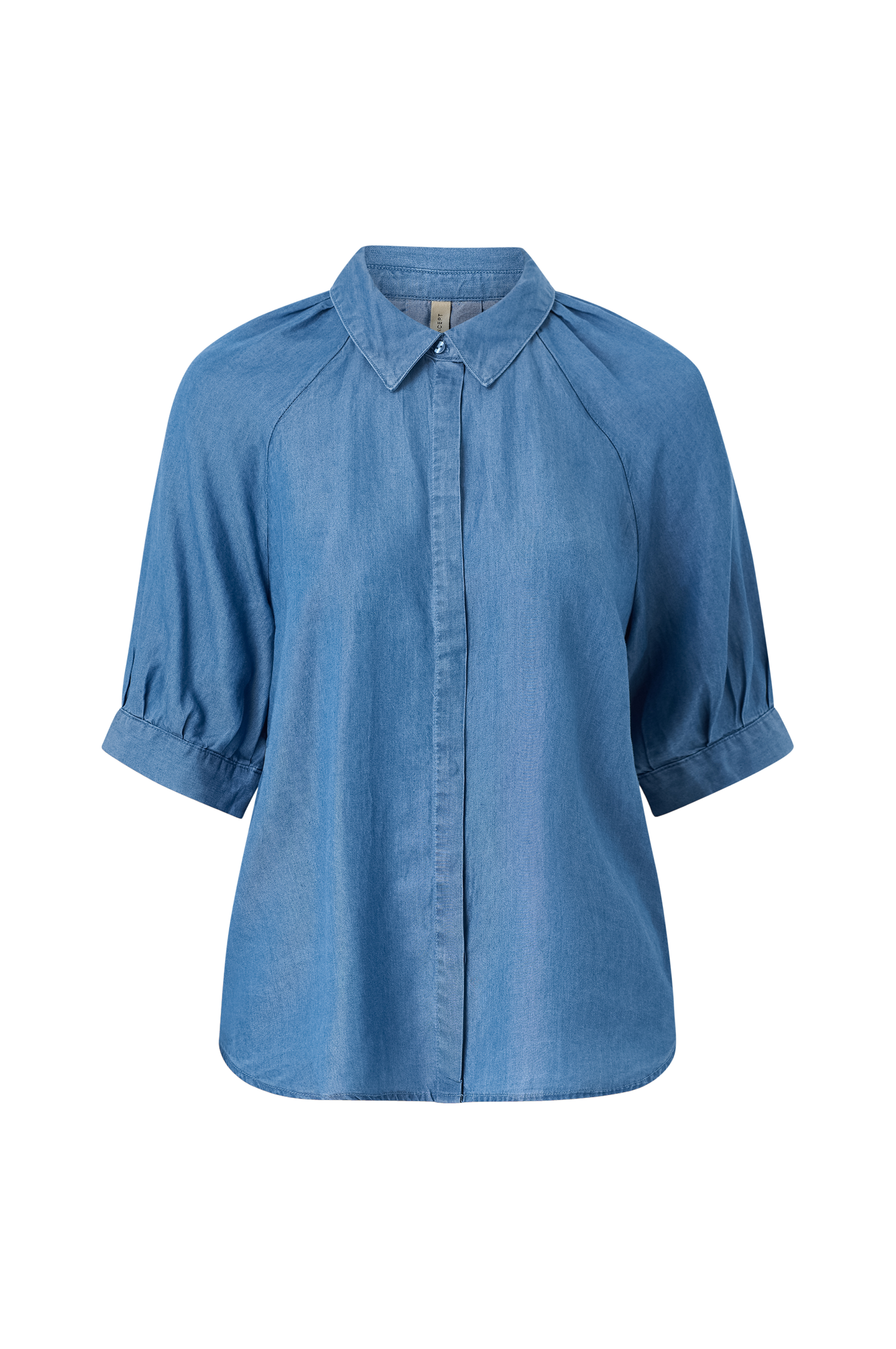• Skjorte med halvlange ermer• Skjult frontknepping• Avrundet linning