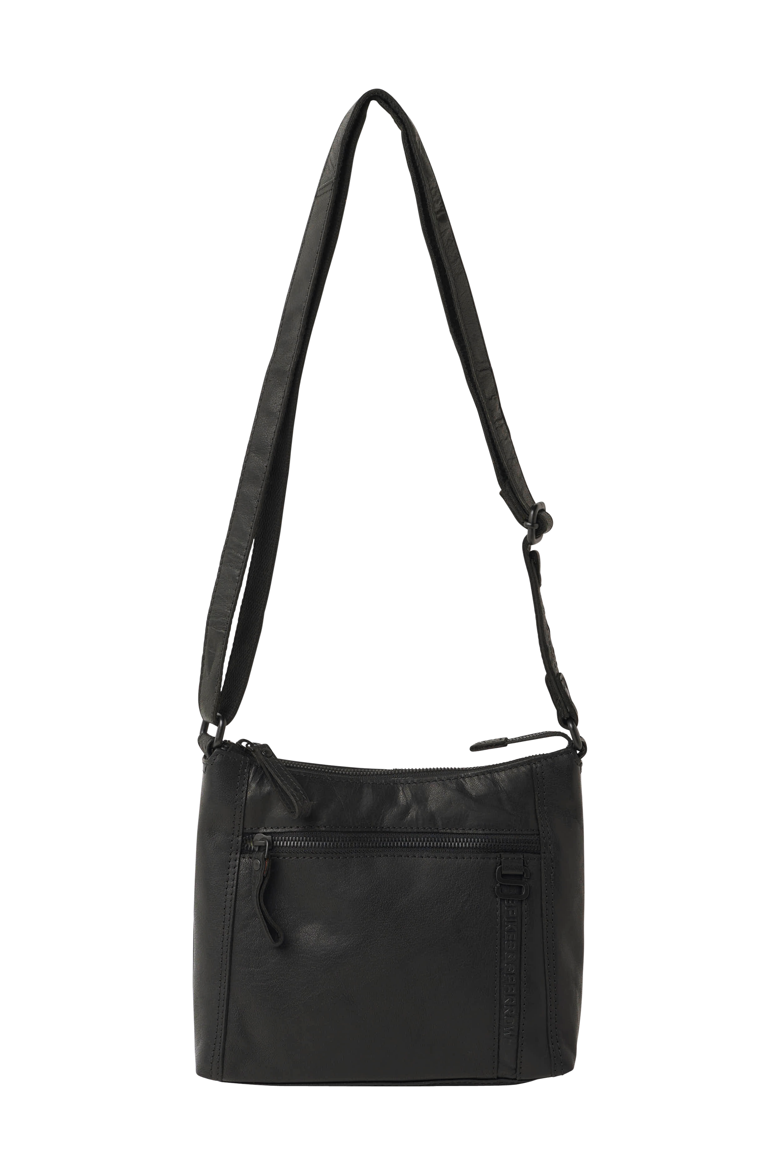 • Vesken i skinn• To utvendige glidelåslommer• En innvendig glidelåslomme• En innvendig, åpen lomme• To innvendige pennlommer• Tekstilfôr• Justerbar skulderstropp med stoffdekket innside• Mål: B 26 x H 20 x D 7 cm.