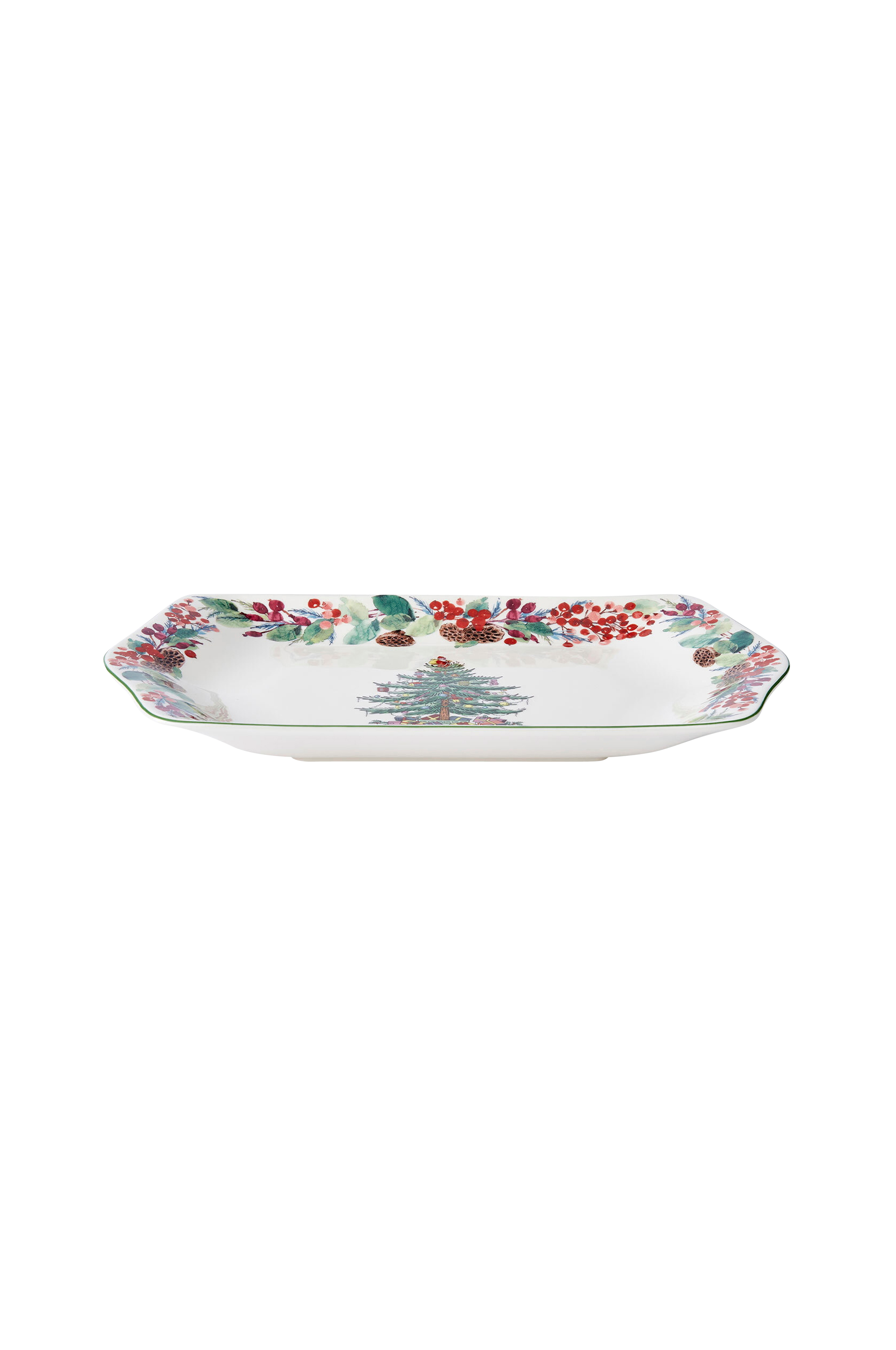 Brett i serien Christmas Tree fra Spode med det klassiske juletremotivet. Av porselen.