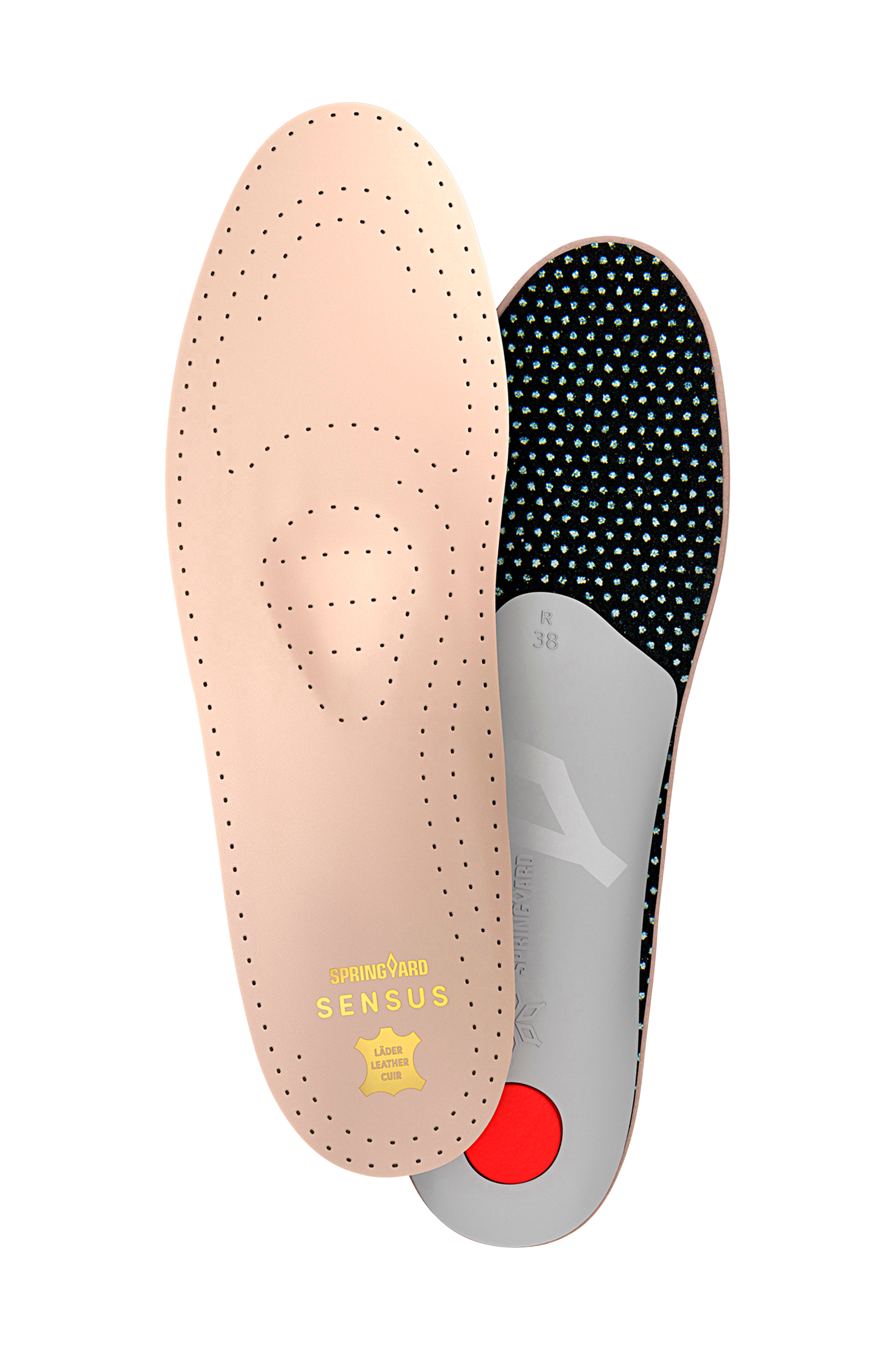 Sensus Leather er en håndlaget anatomisk formet fotseng i vegetabilsk garvet kalveskinn. Gir beste komfort og støtte med oppbygd fotbue, integrert pute i framfoten og demping i hælen. Inneholder kullfilter for optimal hygiene. Slim passform som passer de fleste sko. Luft sålen etter bruk for lenger holdbarhet.