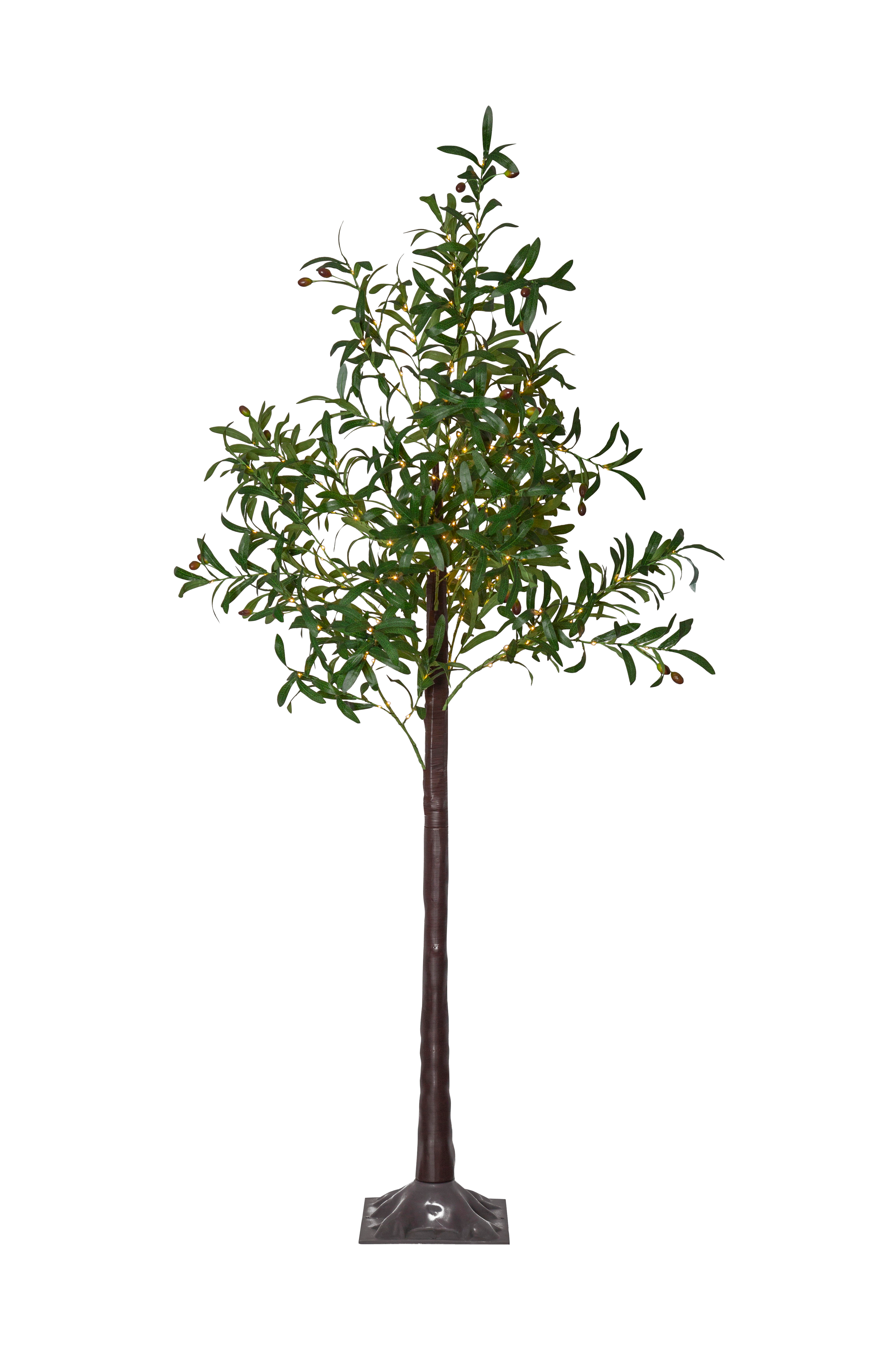Skap middelhavsfølelse med dette naturtro kunstige treet med olivenblad og oliven, 180 cm høyt med 178 varmhvite lyspunkter. Gir et herlig lys