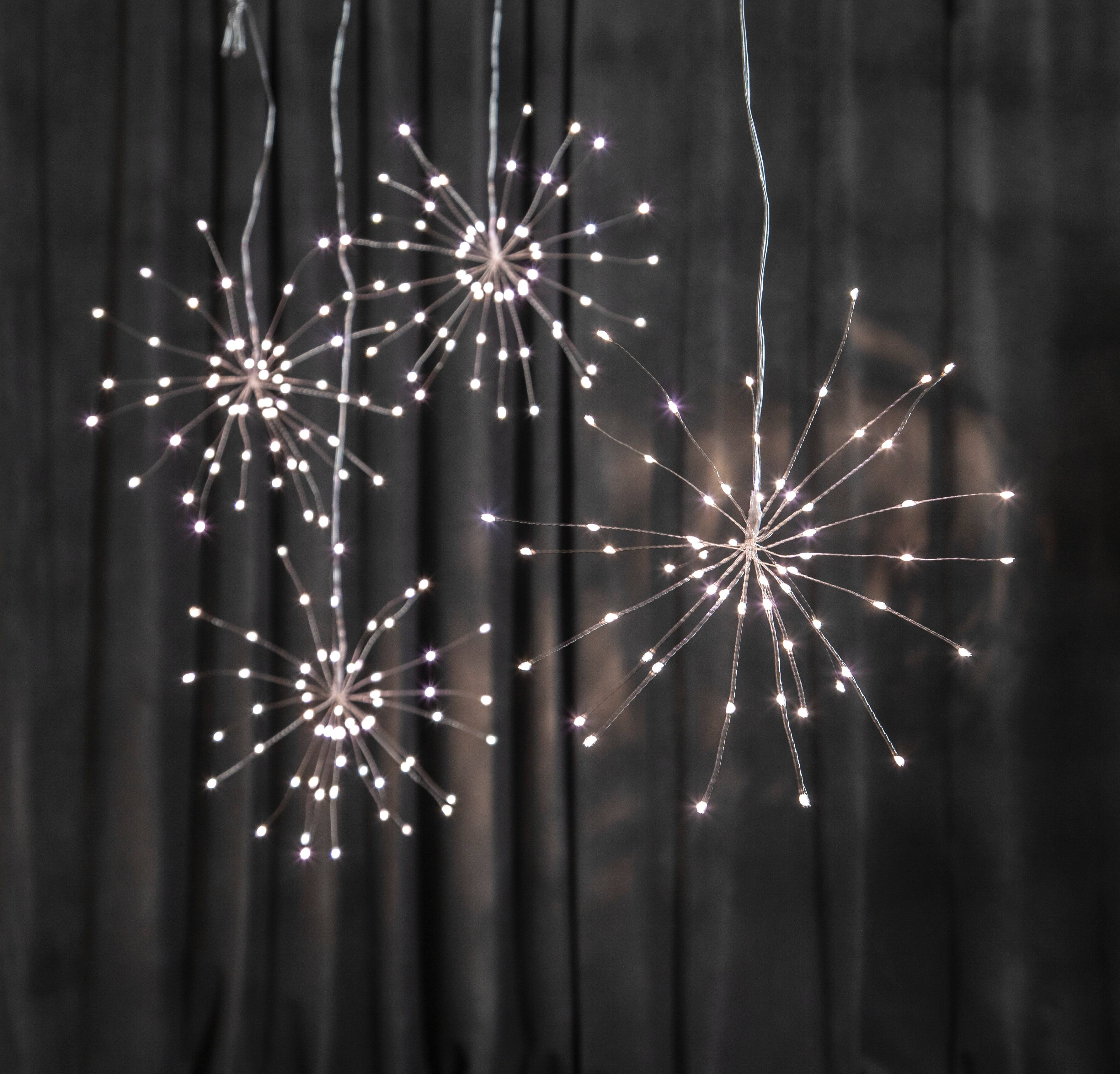 Hengende dekorbelysning for innendørs bruk. Dekoren er 26 cm høy/bred og har 60 LED-lys. Skaper en deilig atmosfære. Drives med 3 AA-batterier (ikke inkludert), 6 h på, 18 h av, repeterende. Strømledningens lengde er 150 cm.