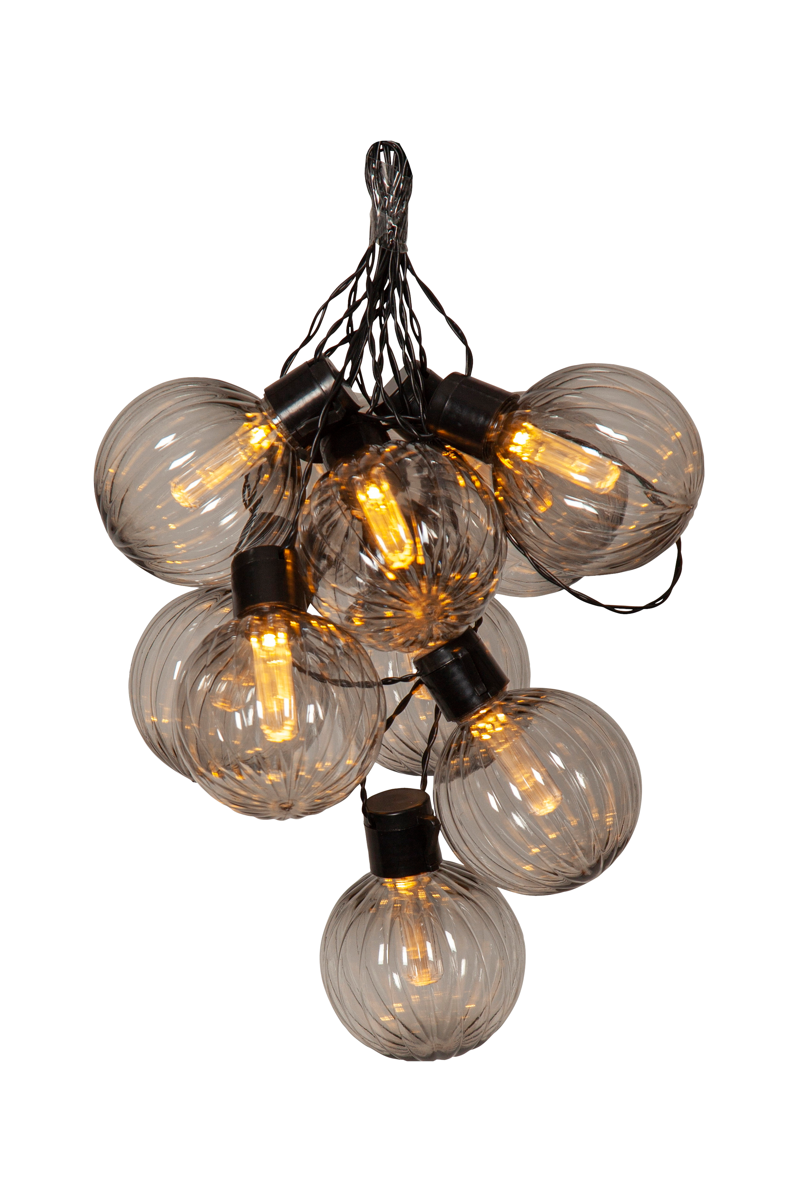 Pen dekorativ lyslenke for utendørs bruk. 10 stk røykfargede deksel med riflet overflate som gir et herlig lys. Dekorer uteområdet eller hagen for en stemningsfull atmosfære.