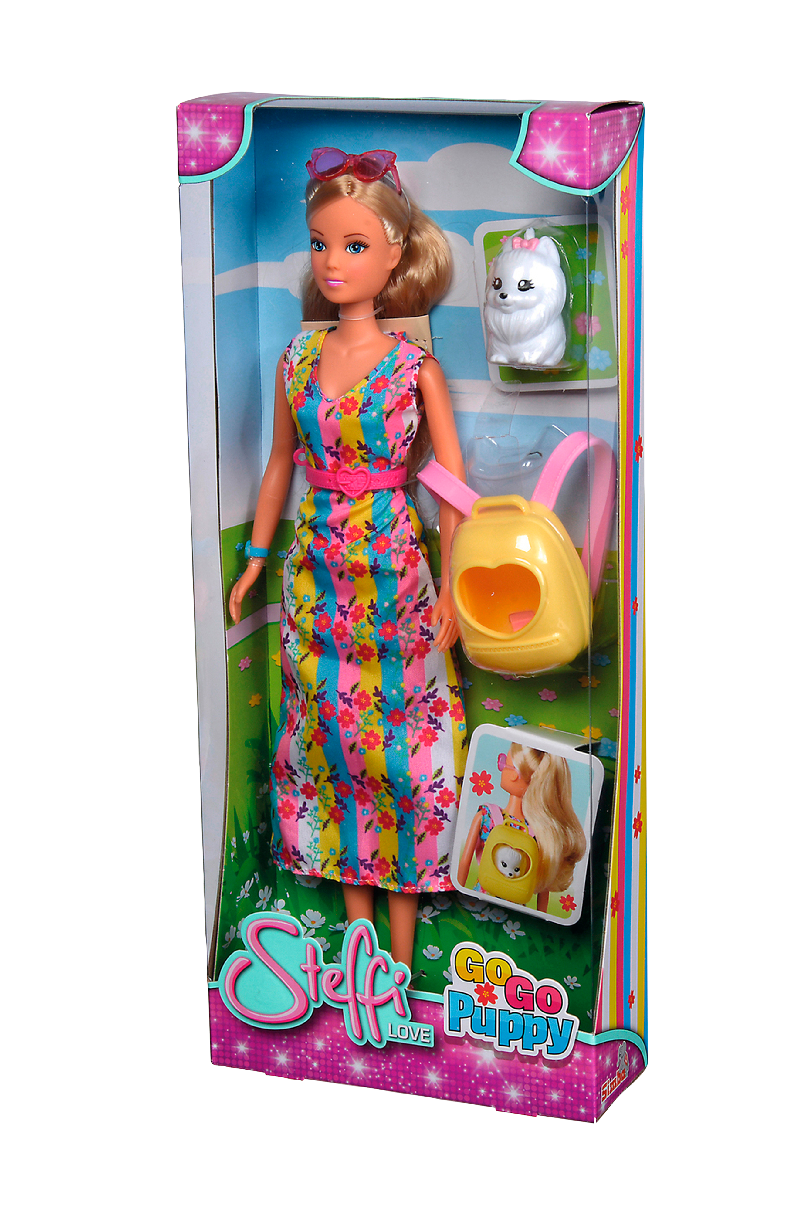Settet inneholder: - Steffi-dukke - 29 cm lang.- Hund.- Ryggsekk.