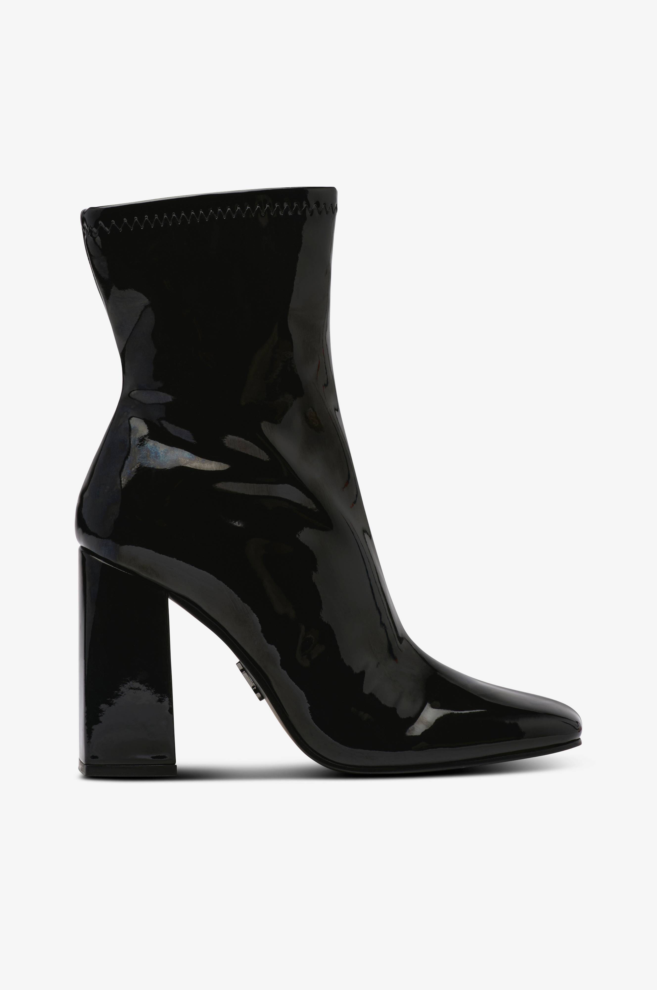 • Boots i skinnimitasjon lakk• Glidelås på innsiden av skaftet• Høy kilehæl• Tekstilfôr• Skafthøyde: 14 cm i størrelse 37• Hælhøyde: 9,5 cm