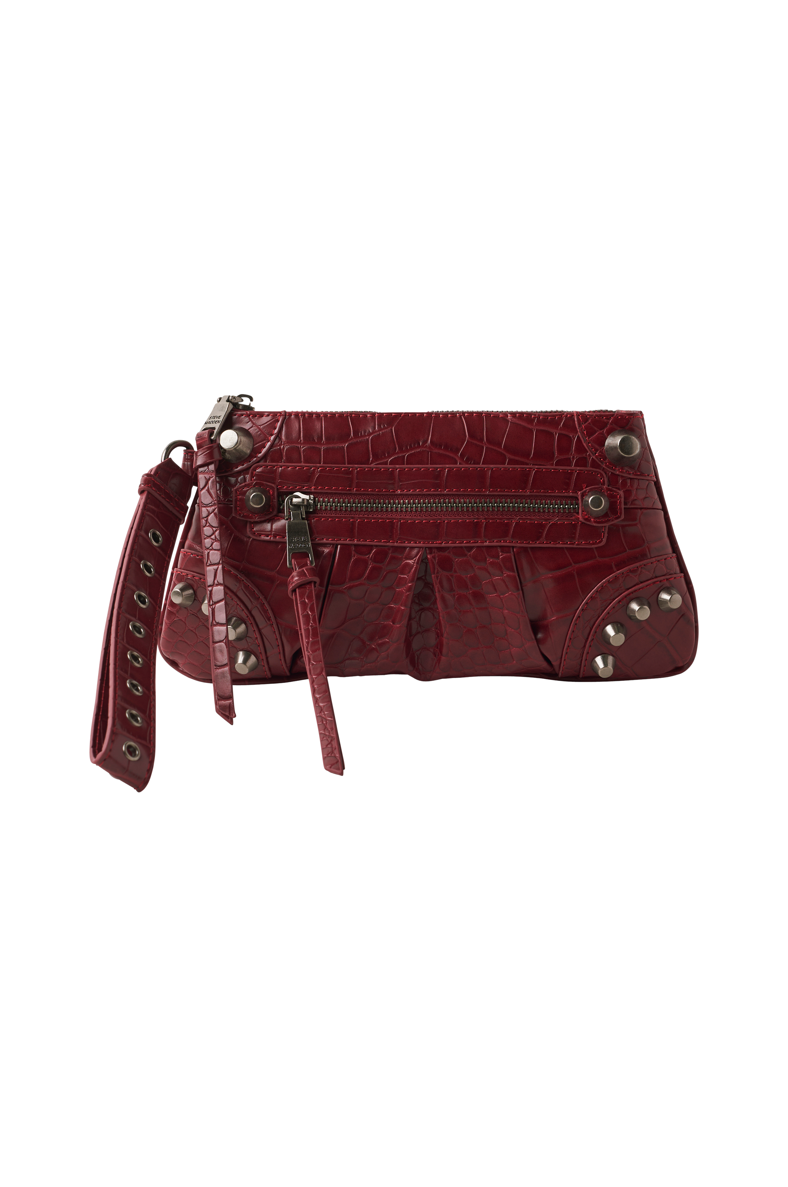 • Clutch i skinnimitasjon med et krokodillemønster• Stoffdekket innside med to beholdere• En beholderen på utsiden• Glidelåslukking• Bærestropp• Mål: B 27 x H 13 cm
