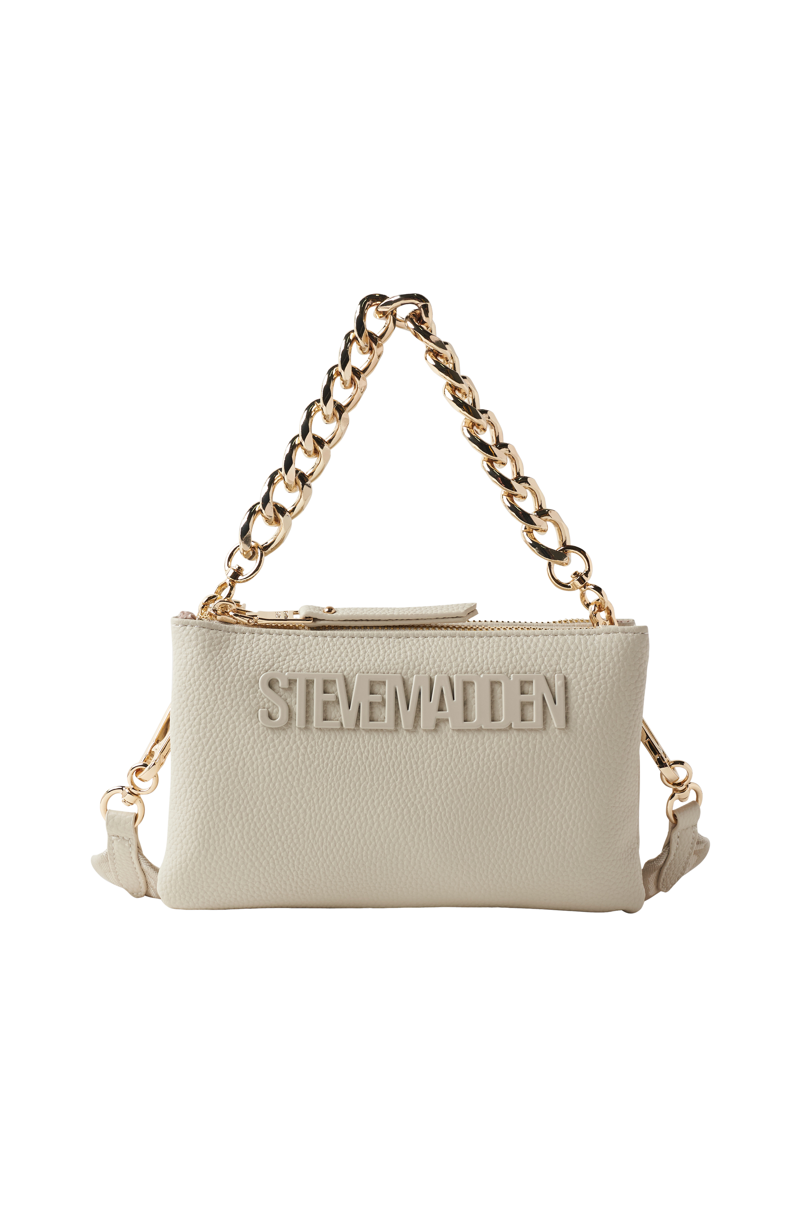 • Skulderveske i skinnende polyuretan med struktur• Justerbar skulderstropp• Kjedeformet skulderstropp• To hovedlommer med glidelåser• Liten beholderen på innsiden med glidelås• Logotrykk på en side• Lengde/Dybde: 2 X Bredde: 21 X Høyde: 13 cm