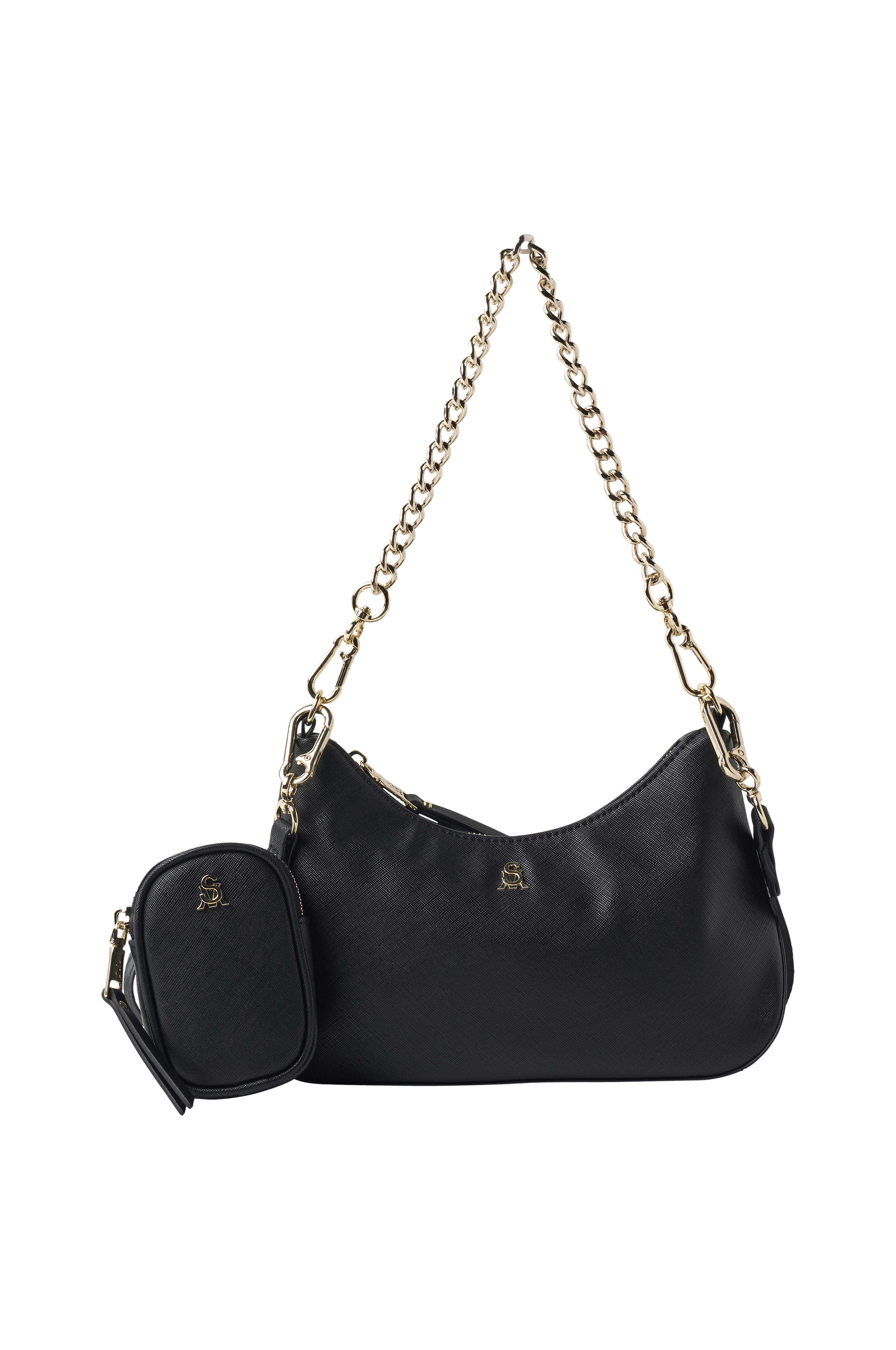 • Justerbar, avtagbar skulderstropp• Avtagbar kjedeformet skulderstropp• Hovedlomme med glidelås• En innvendig, åpen beholderen• En innvendig glidelåsrom• Liten, avtakbar tilleggspose med glidelås som kan festes på skulderstroppen