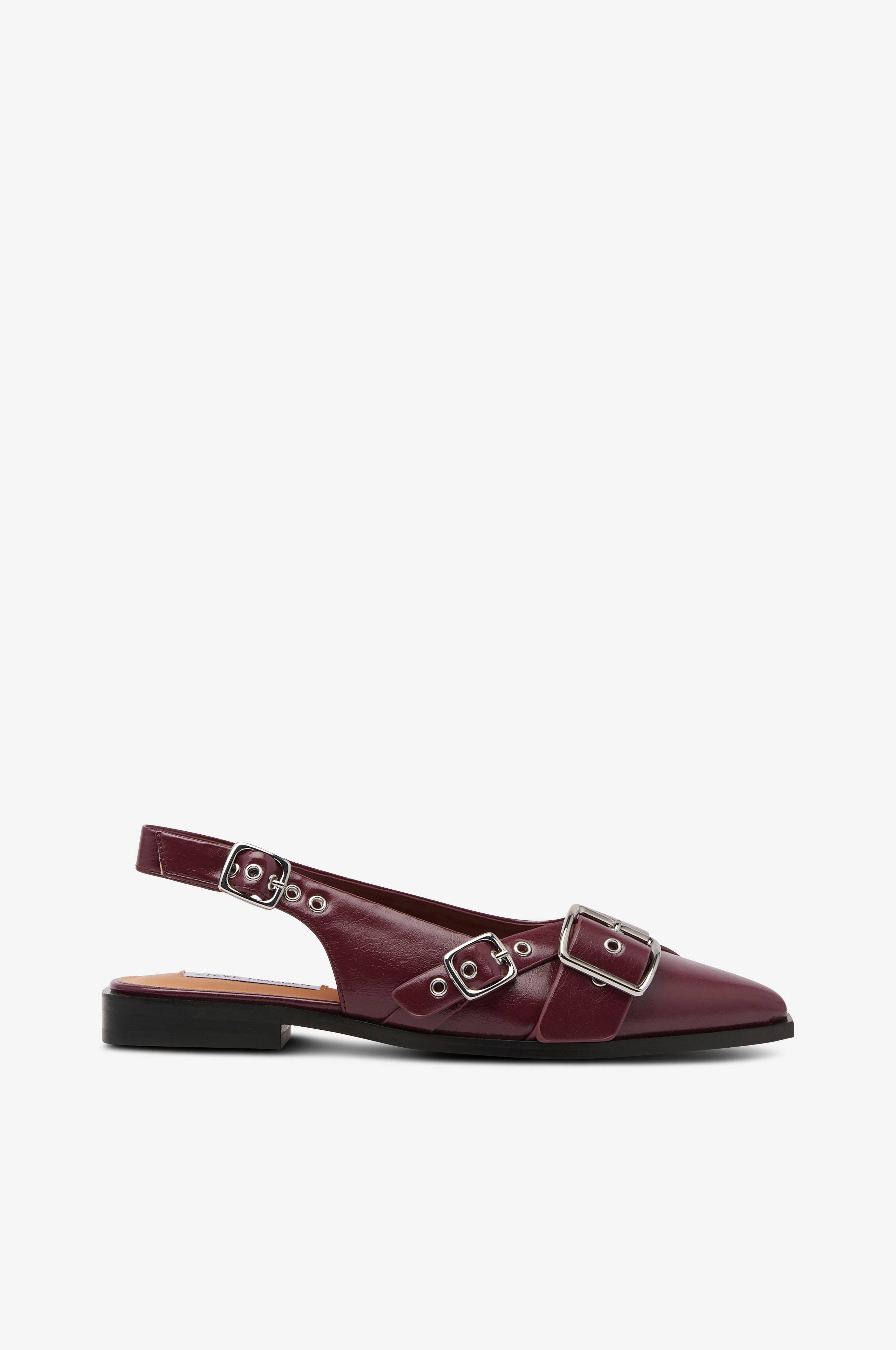 • Øvre del i skinnimitasjon• Spiss tåform• Dekorative spenner foran• Justerbar bakstropp• Mykstoppet innersåle• Lav hæl• Hælhøyde: 2 cm