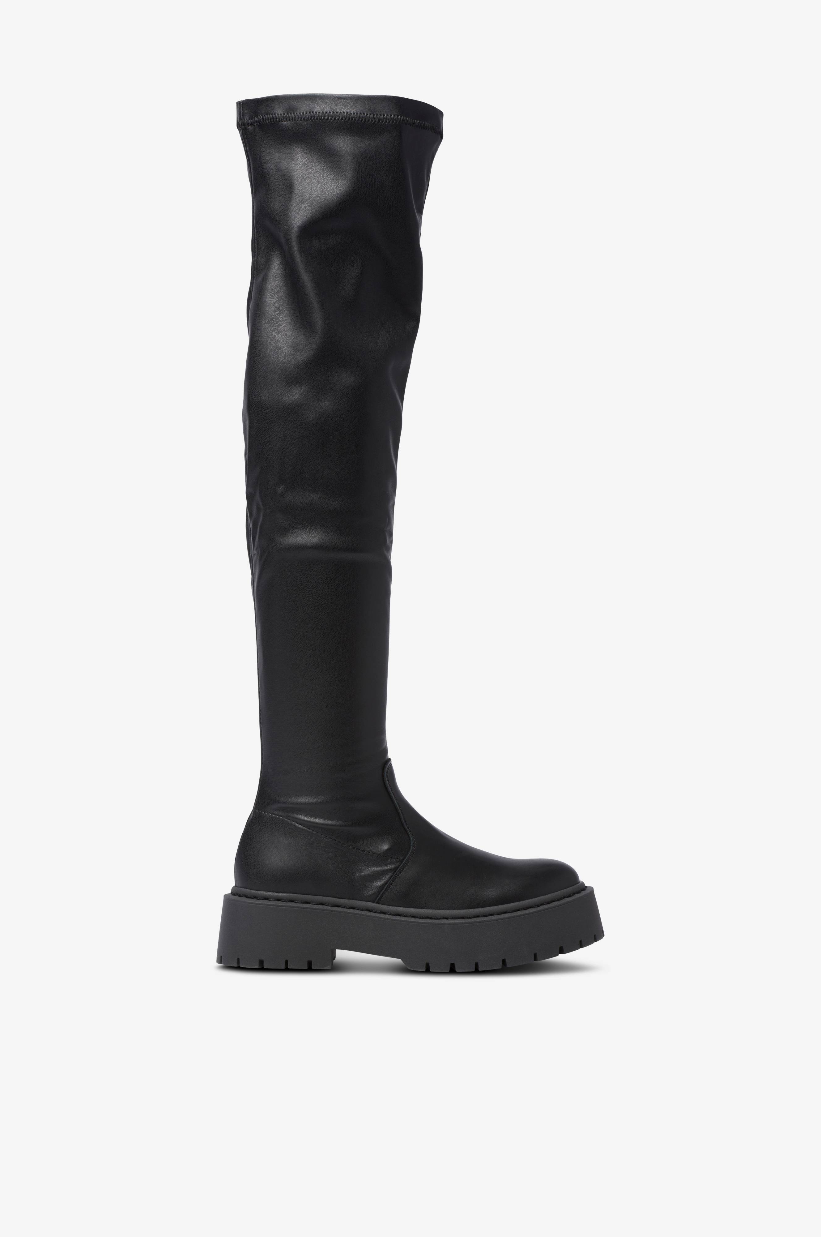 • Høye støvler i skinnimitasjon• Mykt, fleksibelt skaft med stretch• Kort glidelås ved ankelen• Tykk såle• Hælhøyde: 5 cm• Skafthøyde: 55 cm i størrelse 37