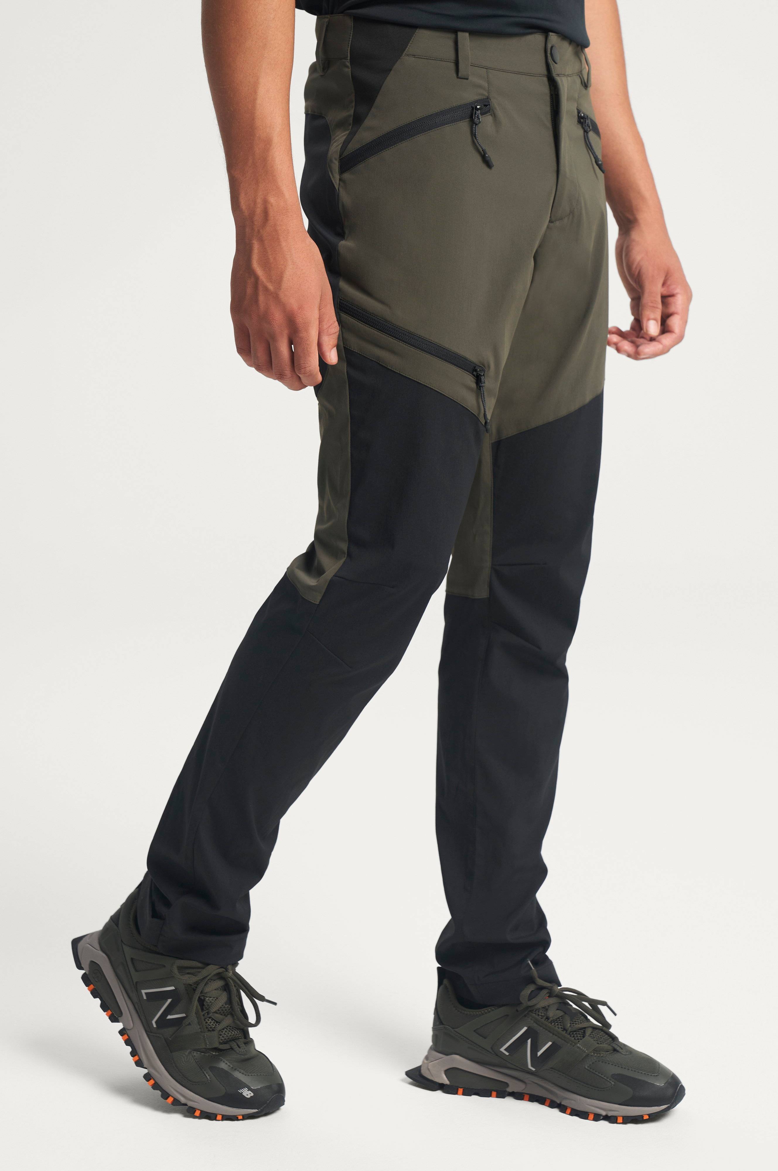 Bukse Function Outdoor Pants fra Studio Total Active. Buksen har ‘slim' passform, og er i en lett kvalitet med stretch som gir stor bevegelsesfrihet. Stoffet er behandlet med en hurtigtørkende behandling, noe som gjør at plagget tørker fort hvis du blir våt ved bruk, men også etter vask. Normalhøy midje med strikkile ved sidene og gylf med glidelås og to trykknapper foran. To sidelommer, en benlomme og en baklomme som alle lukkes med glidelås. Buksen har justerbar borrelås i benkantene. Indre benlengde ca. 81 cm i str M.