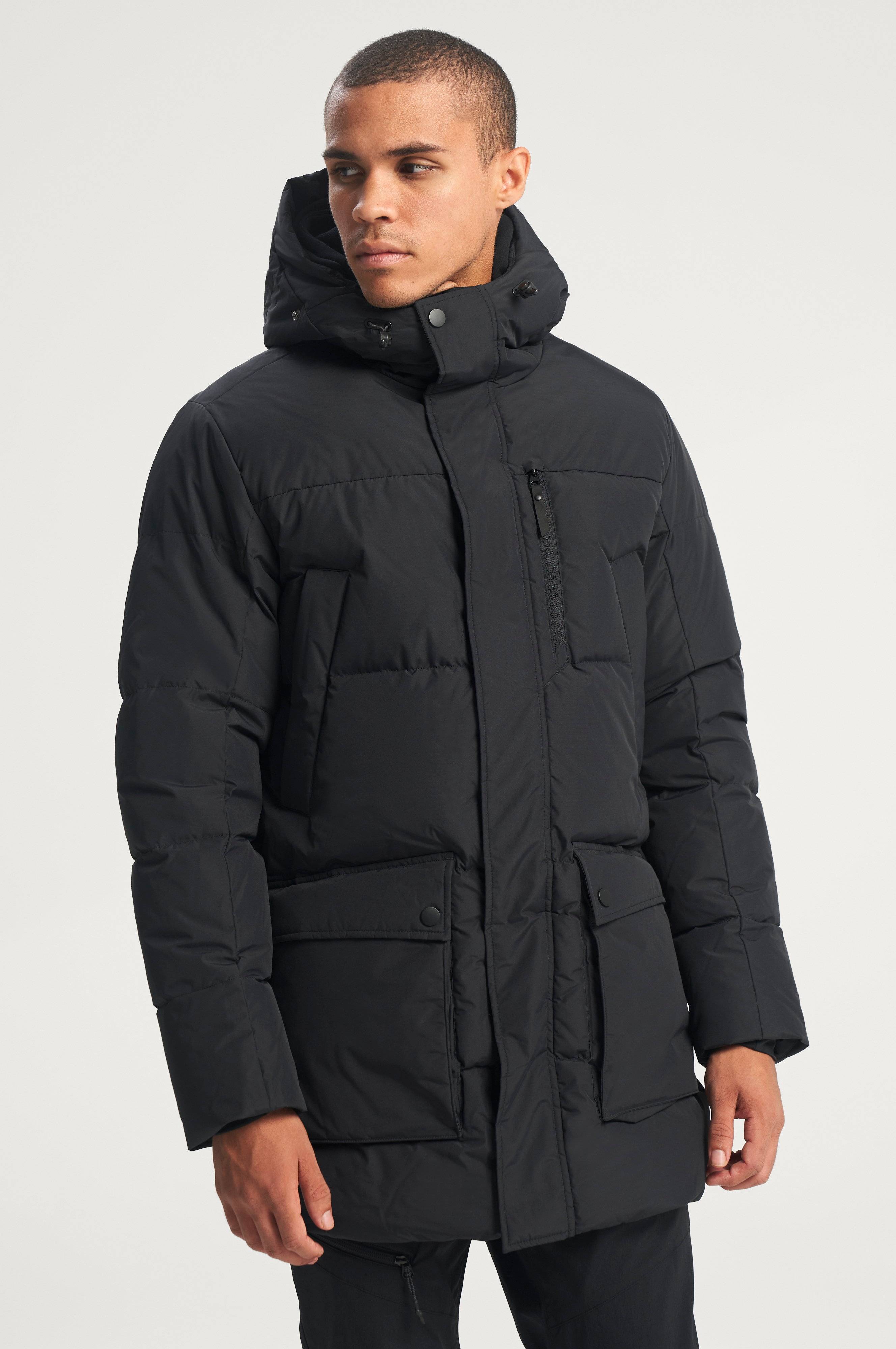 Dunjakke Down Puffer Parka fra Studio Total Active. En noe lang, varmfôret puffer med dunfyll som er fremstilt i et vannavvisende stoff. Normal passform. Hette med justerbar snøring og avtagbar fuskepels. Høy krage med børstet polyester på innsiden. Jakken lukkes med toveisglidelås foran, og har en beskyttende vindstolpe som lukkes med borrelås. Trikotkant på innsiden av ermekantene. Jakken har flere lommer; en brystlomme foran og to på siden med børstet polyester på innsiden samt to hoftelommer med lommeklaff. Tre innerlommer; to åpne lommer i mesh og en lomme med glidelås.