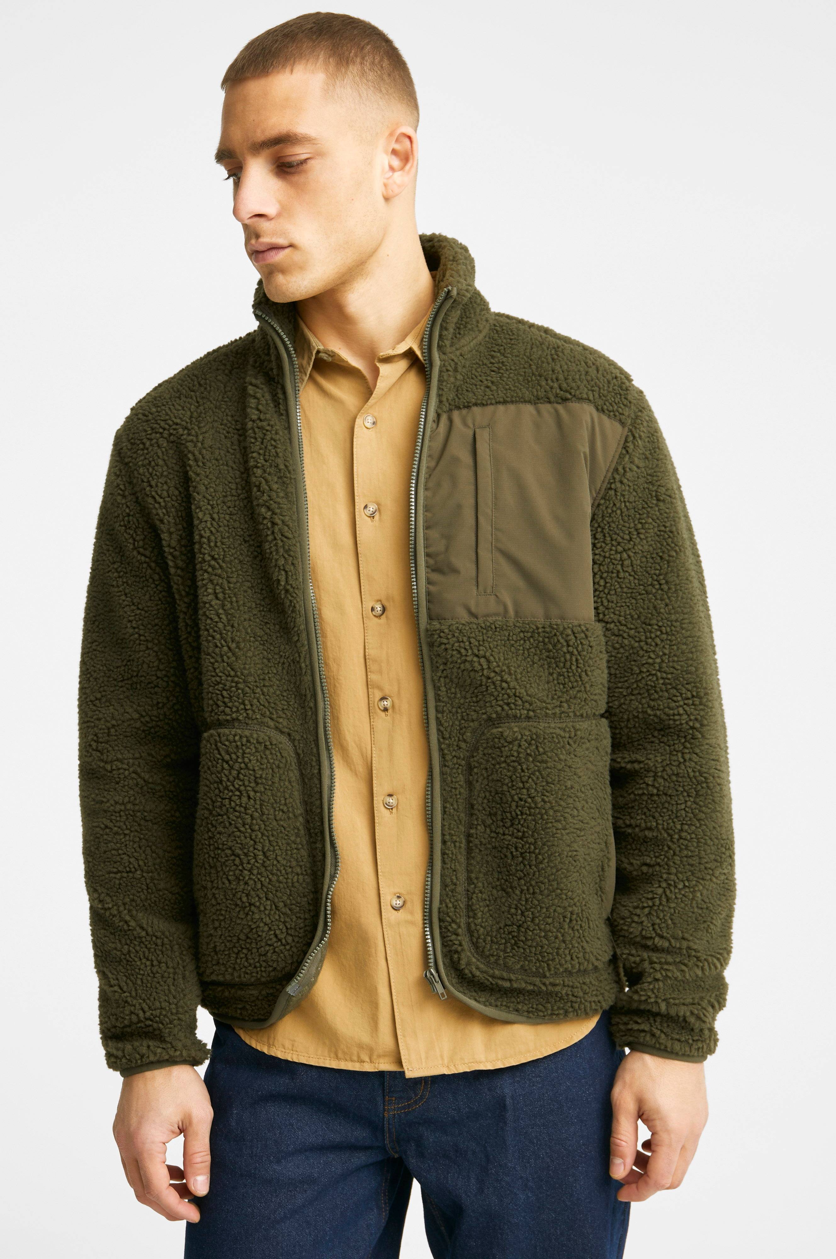 Jakke Contrast Pile Jacket fra Studio Total. Jakken er produsert i gjenvunnet teddymateriale. En brystlomme i nylon og to sidelommer, alle lukkes med glidelås. Elastisk kant i jakkens erme- og nederkant.
