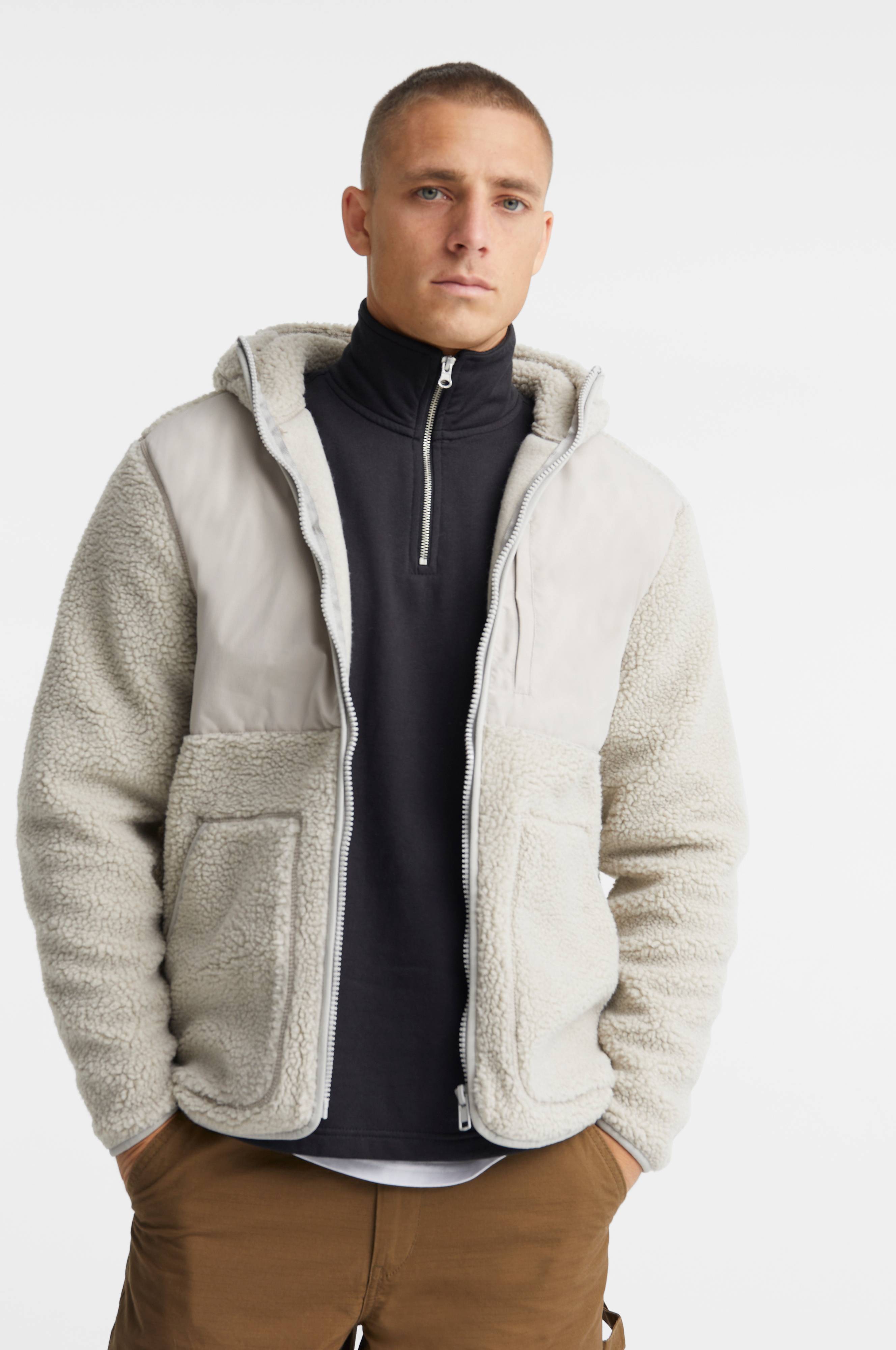 • Hettegenser i teddy-fleece• Vevd parti oppover foran• Glidelås• To lommer på bunnen• Brystlomme med glidelås• Elastiske kanter i ermeslutten og i nedre kant