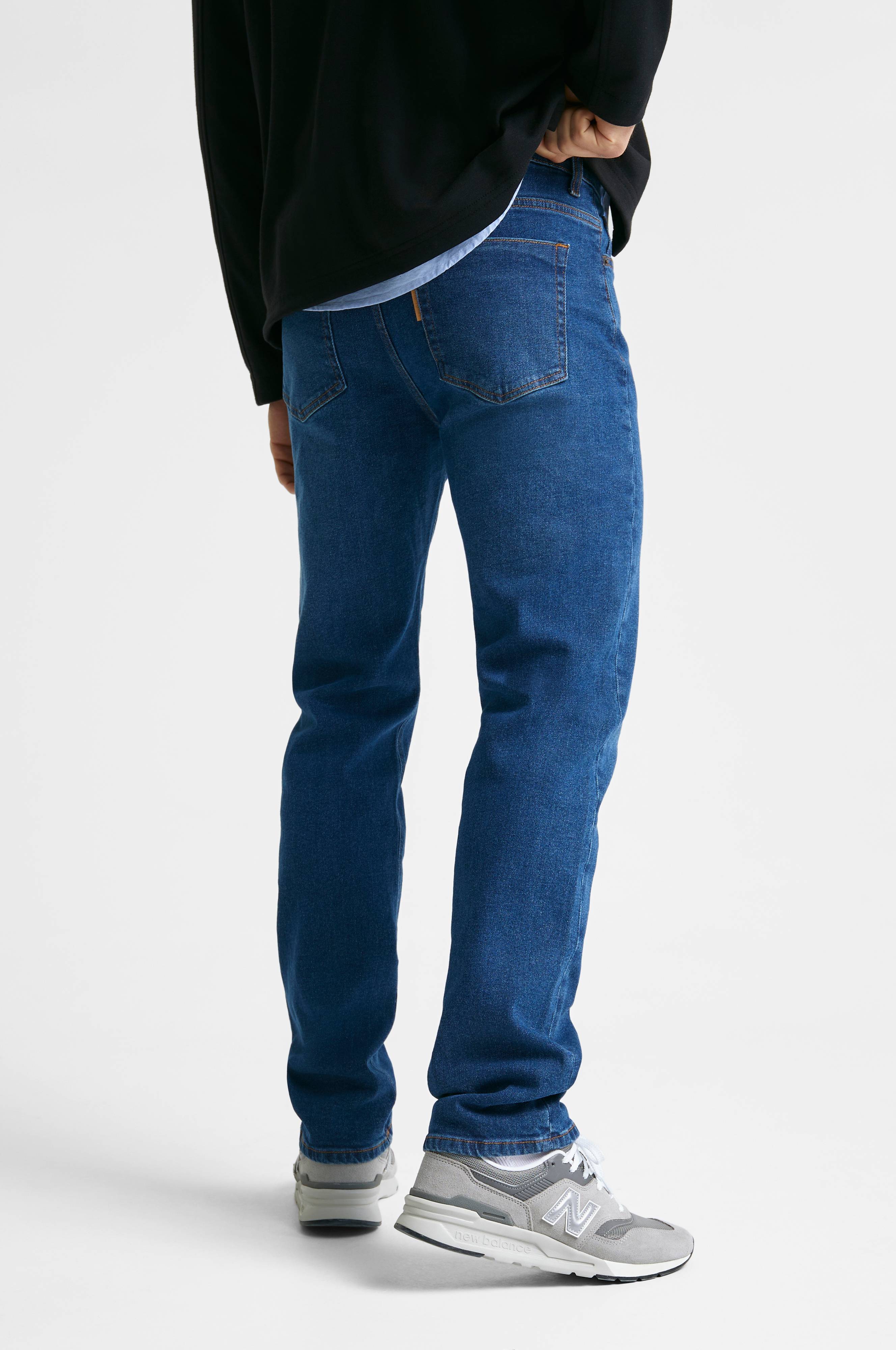 Modellen er 185 cm høy og har på seg størrelse W31
