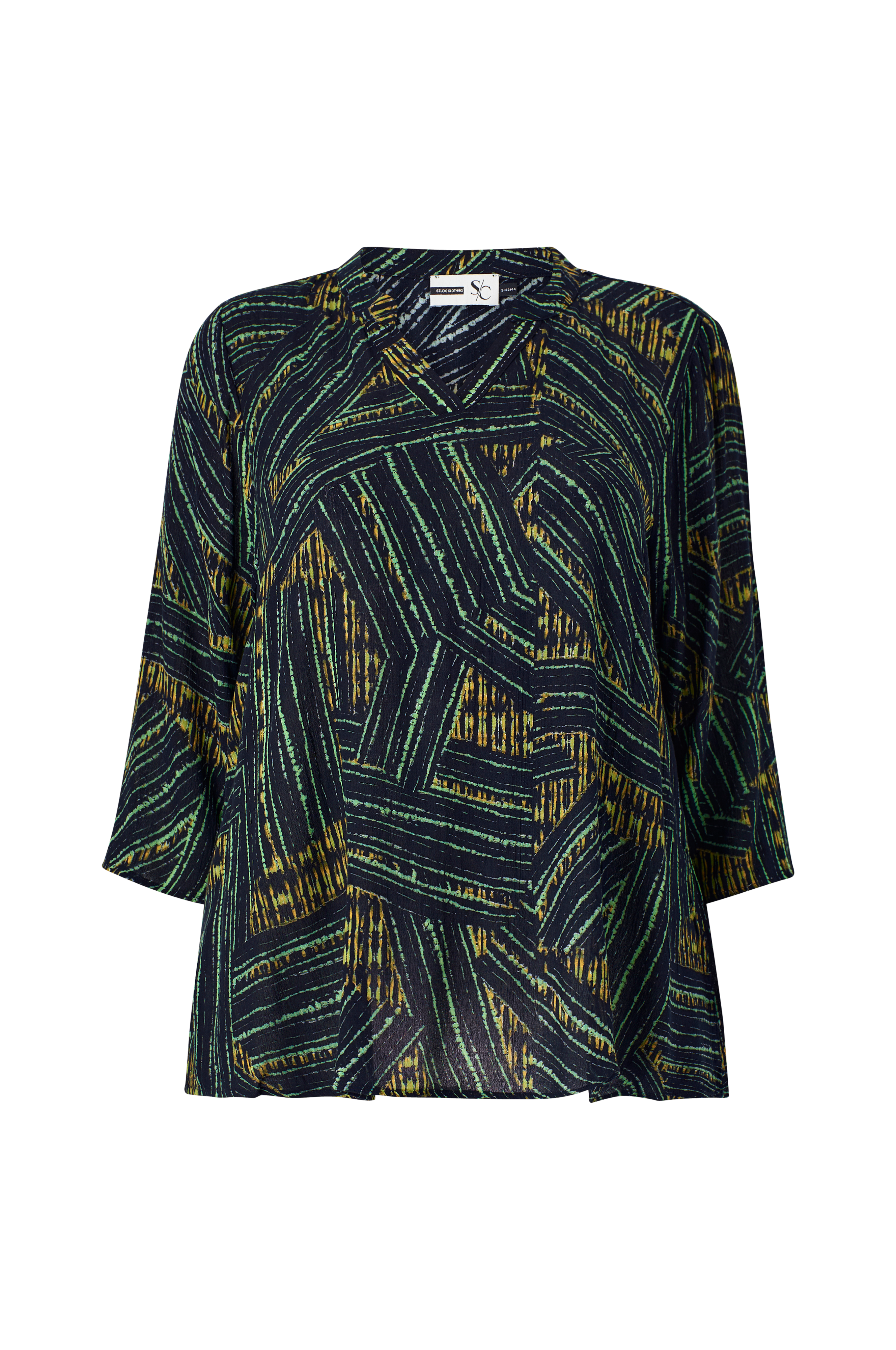 • Plusstørrelser• Uformell modell• Kant i halsen med v-hals snitt foran• Bred arm 3/4 lang