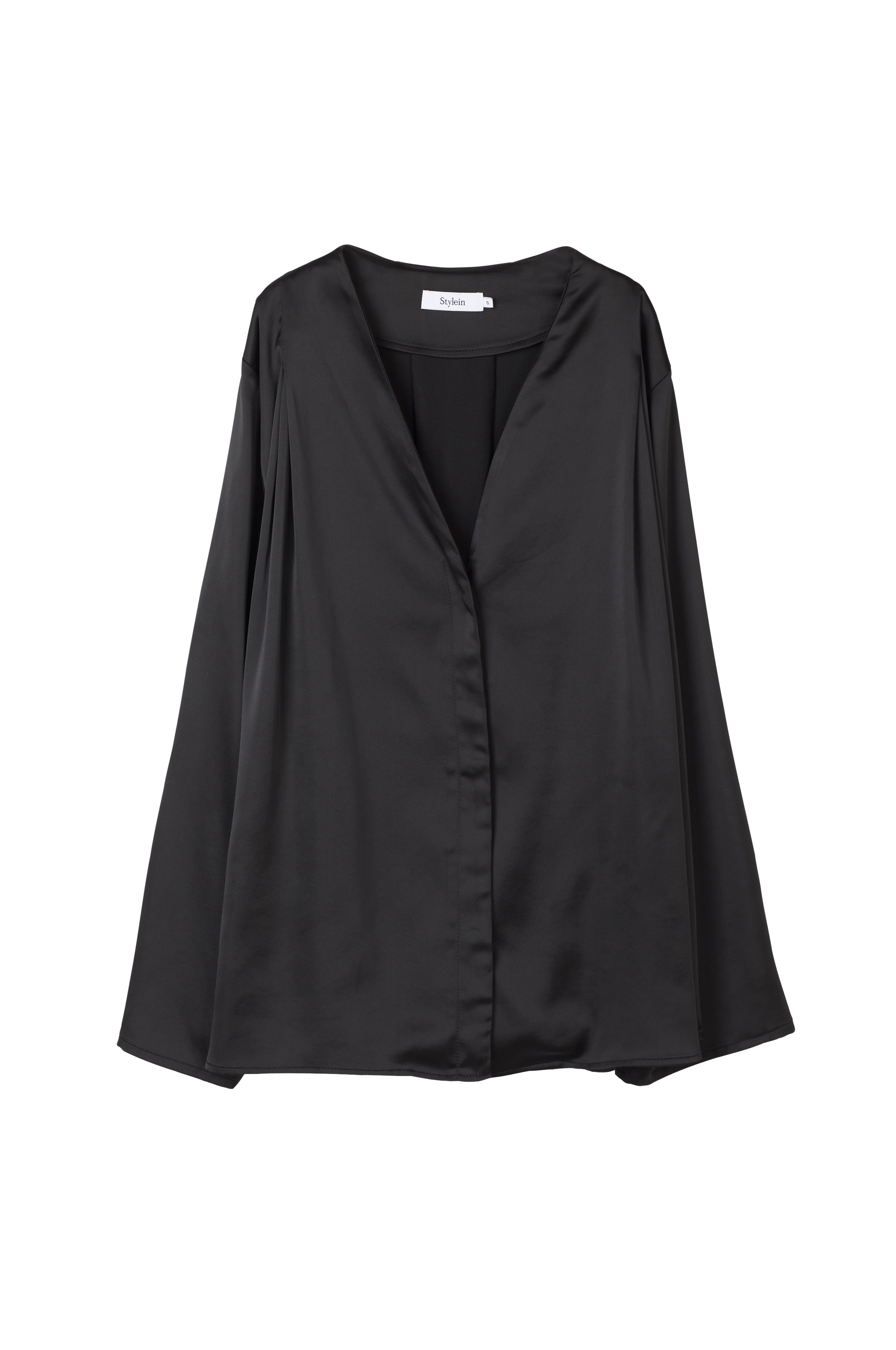 • Langermet bluse i sateng med v-formet hals