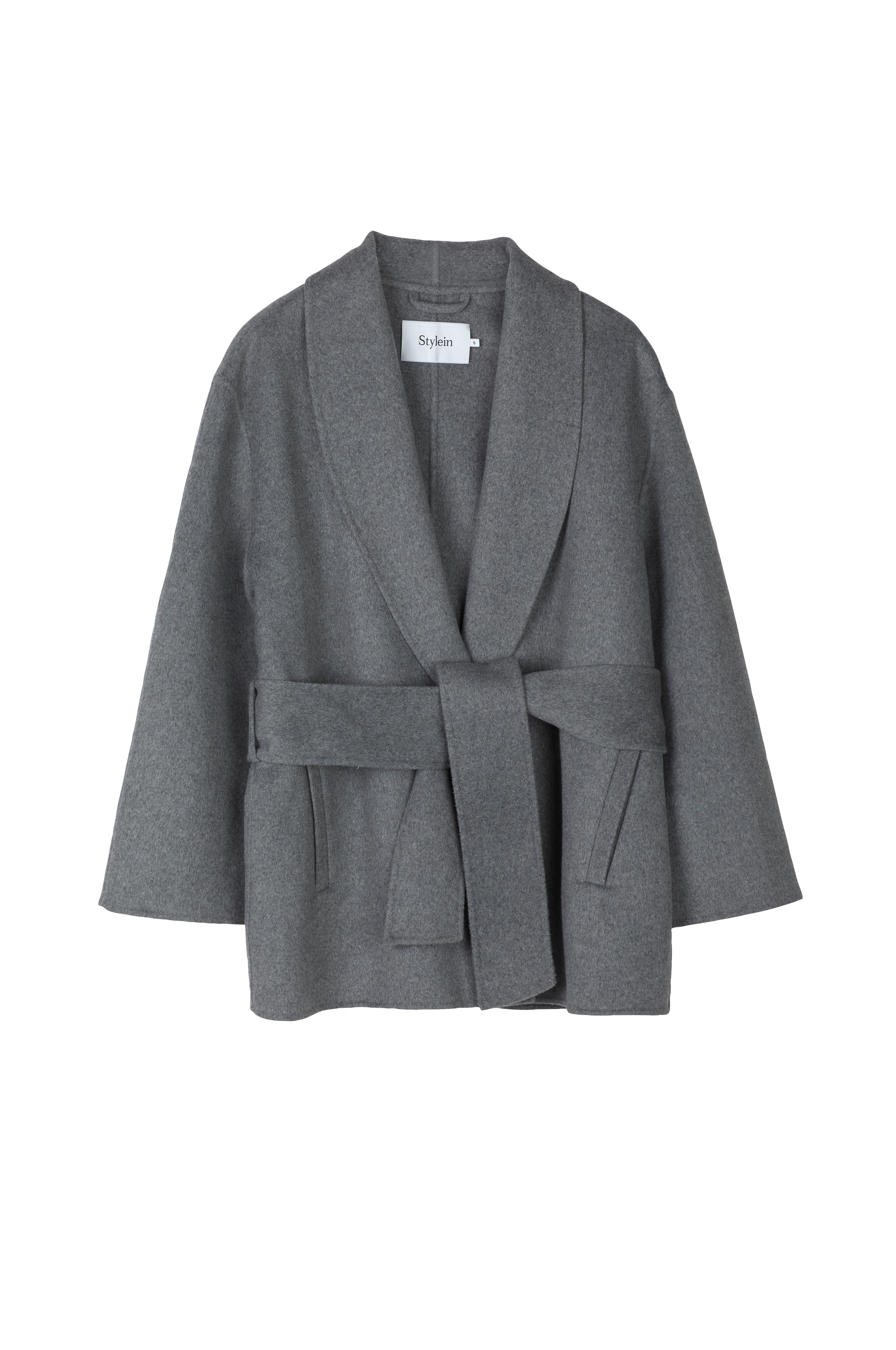• Skjult trykknapp foran• Brede ermer i kimonostil• Beltespenne ved midjen• To lommer• Laget av myk ullmiks• Ufôret• Lengde: 73 cm i størrelse 36