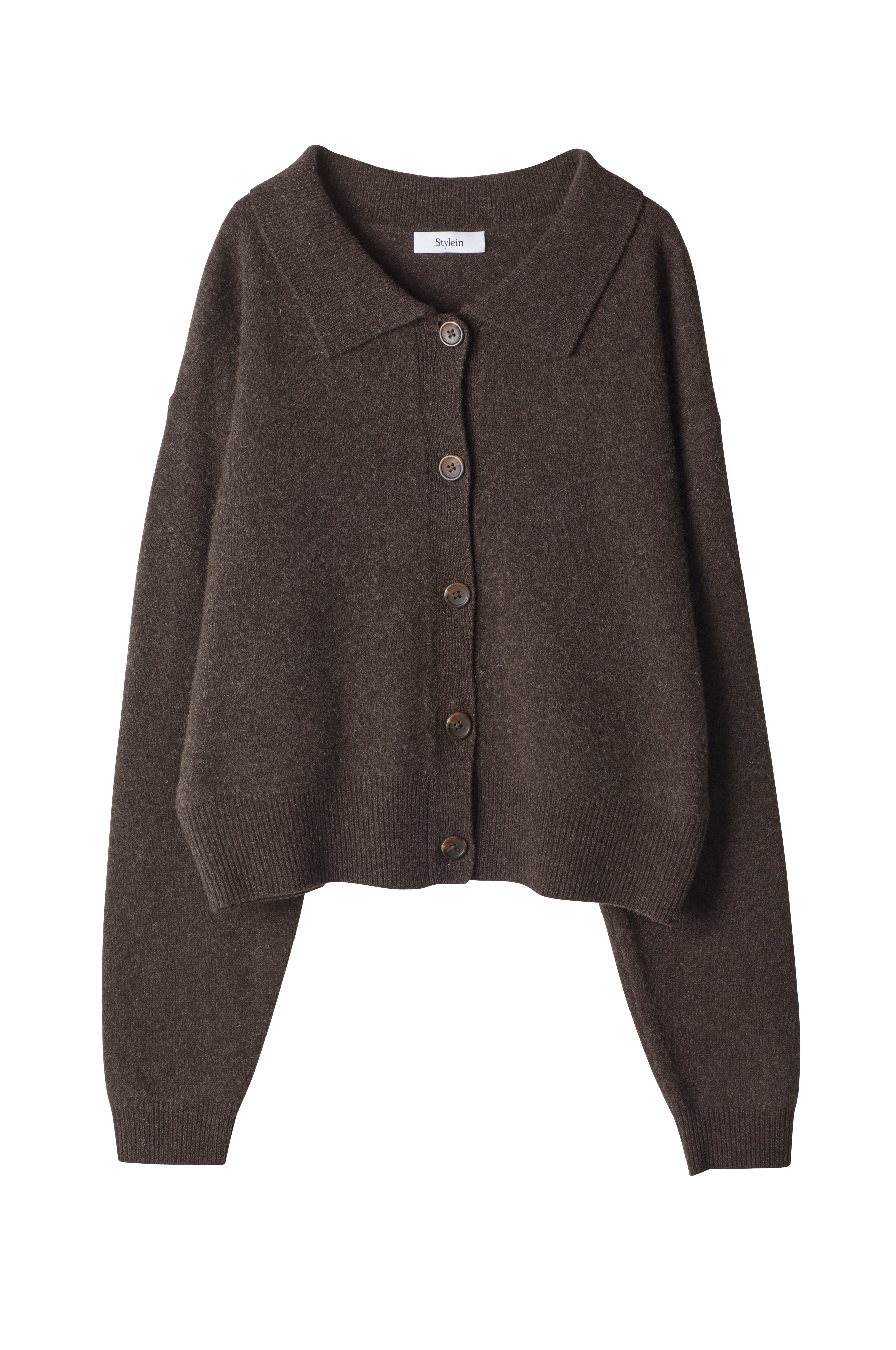• Finstrikket kardigan i ull• Krage• Utringede skuldre• Lange ermer• Knappelukking• Avslappet passform