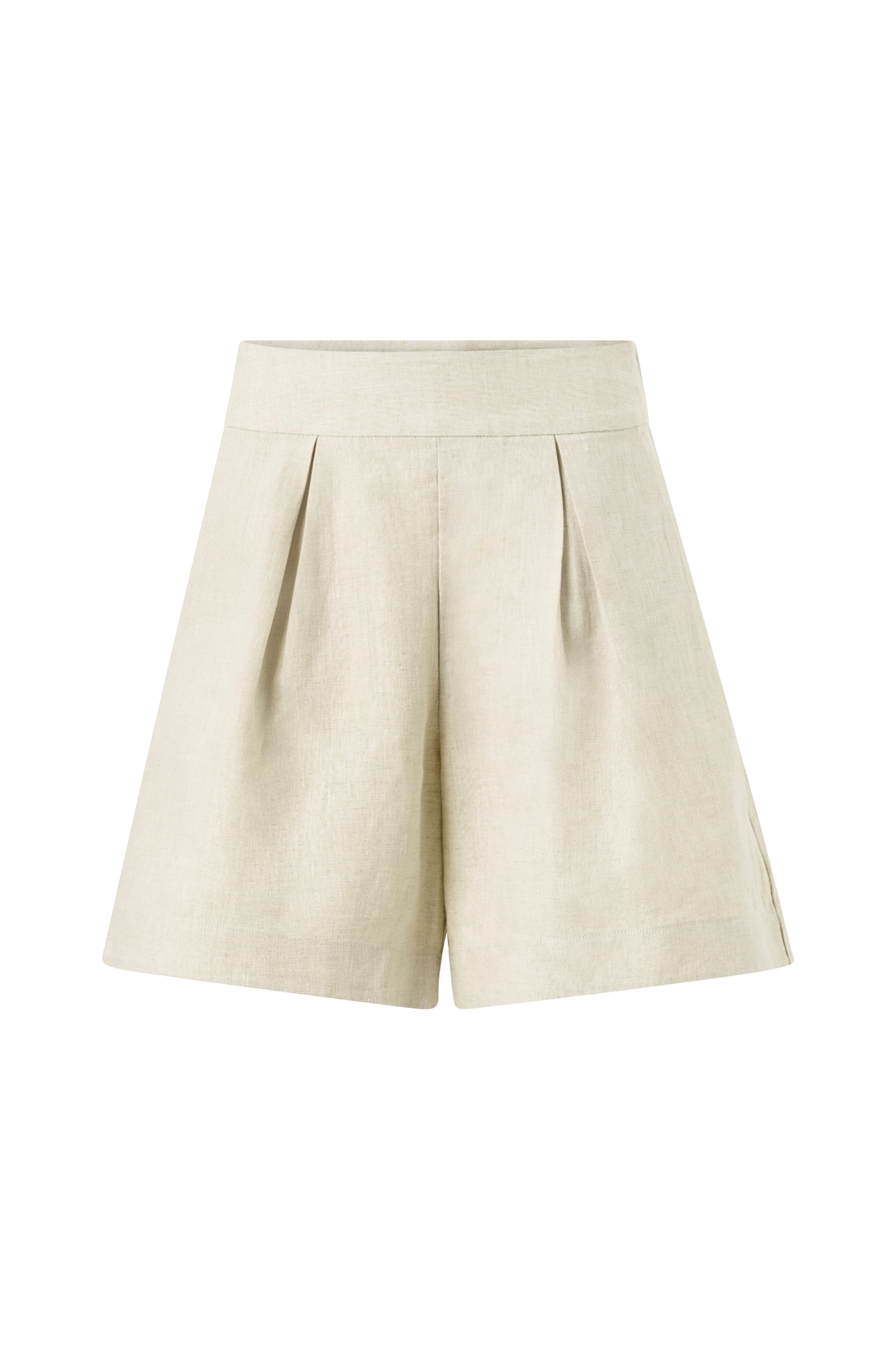 • Shorts i lin• Høy midje• Brede bein• Lommer i sidene• Folder foran• Skjult glidelås i siden