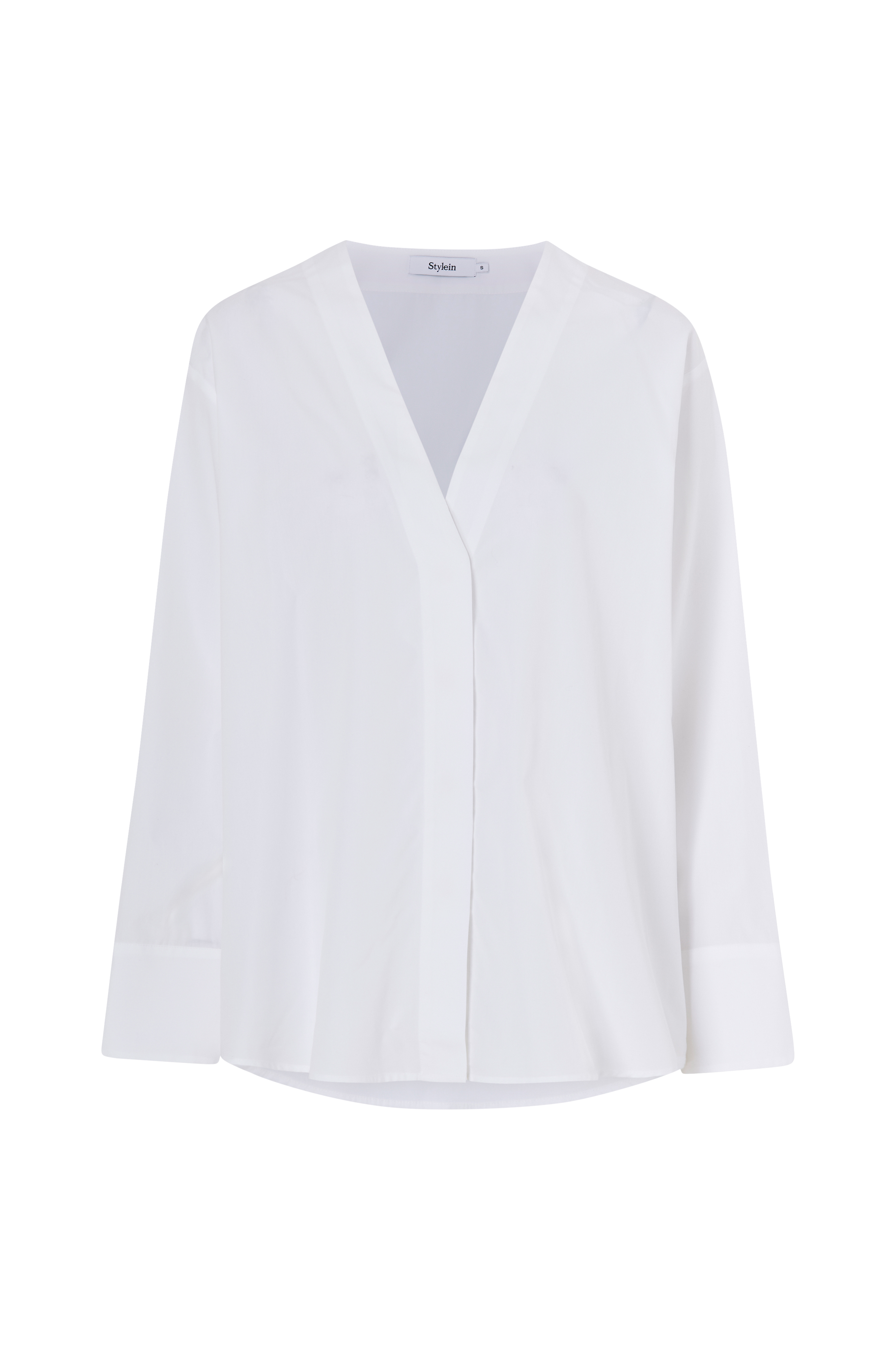 • Oversizemodell• V-hals snitt• Skjulte knapper foran• Lange ermer med mansjett• Litt lengre på baksiden
